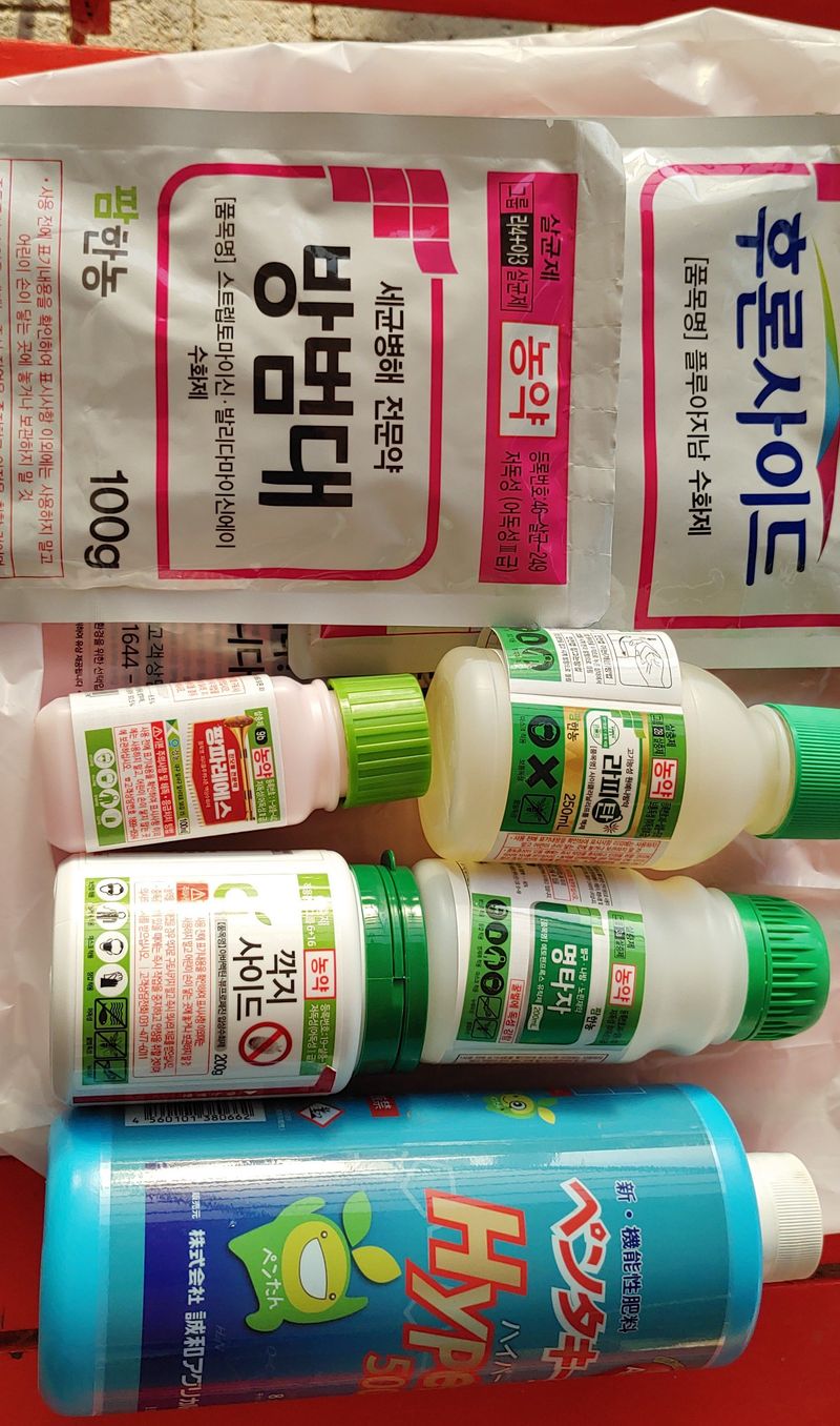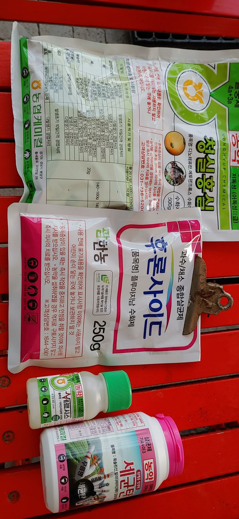 복숭아🍑 봉지씌운 후 첫 병충해 방제작업~~~ 황토유황; 800ml 자닮오일; 800ml, 양파발효액; 1L 청실홍실; 노린재 순나방 후론사이드; 탄저병 세균탄; 세균구멍병 베르시스; 진딧물