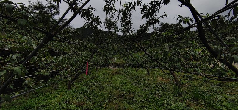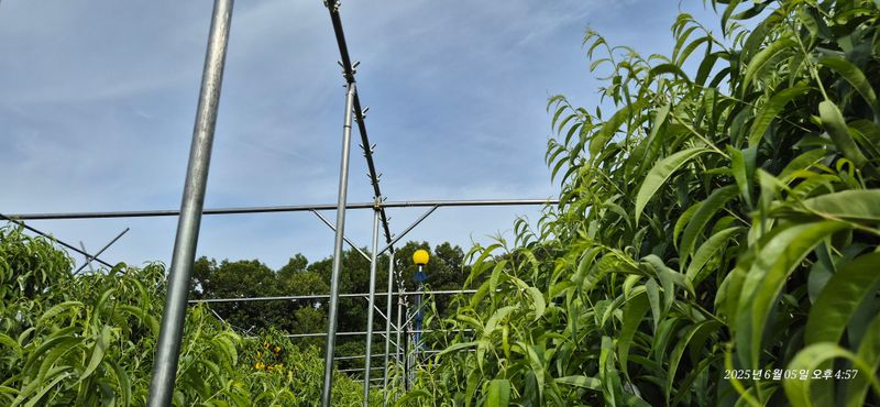 복숭아 포장에 관수 벨브 열어놓고... 도장지 자르기
