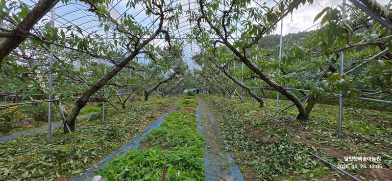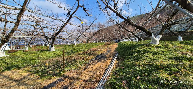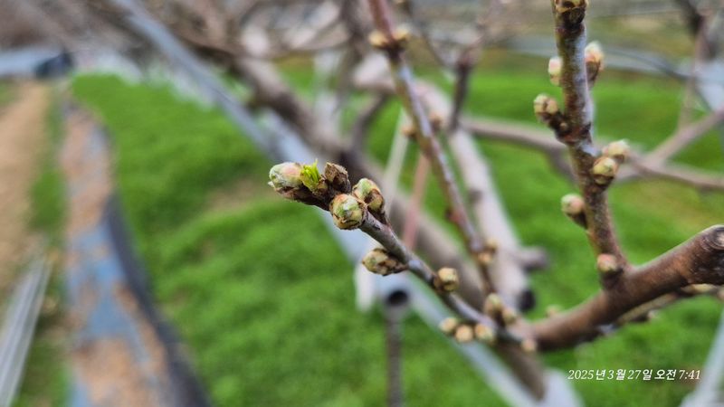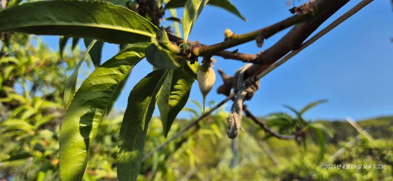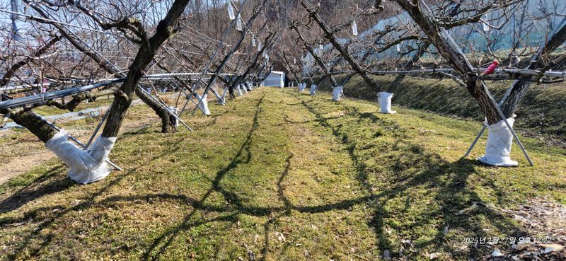 아침 최저기온 0°C, 복숭아🍑 포장에 하얗게 서리가 왔습니다. [질산칼슘 엽면시비]로 하루를 시작합니다. https://m.blog.naver.com/okjaeook7/223846783536