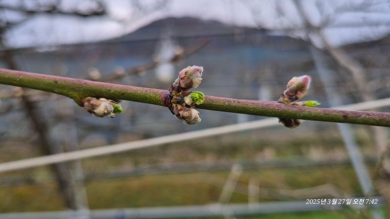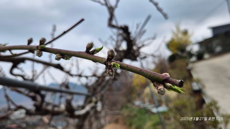 오늘의 복숭아🍑 나무 🌳 생태현황... 복숭아 꽃봉오리에 분홍색🌸이 살짝 보이고, 잎눈🍃이 나오고 있습니다. 올해도 개화보다 잎눈이 먼저 나옵니다. https://m.blog.naver.com/okjaeook7/223811342628