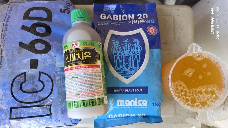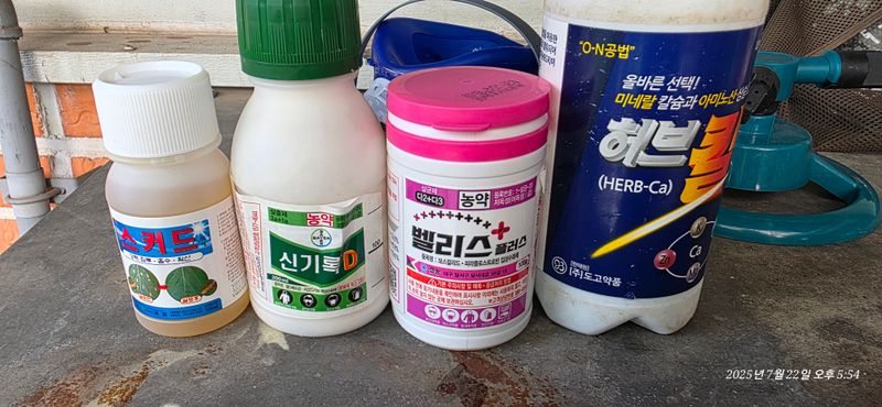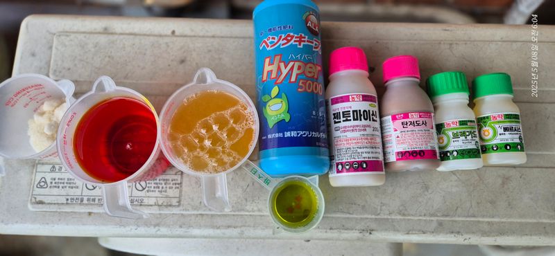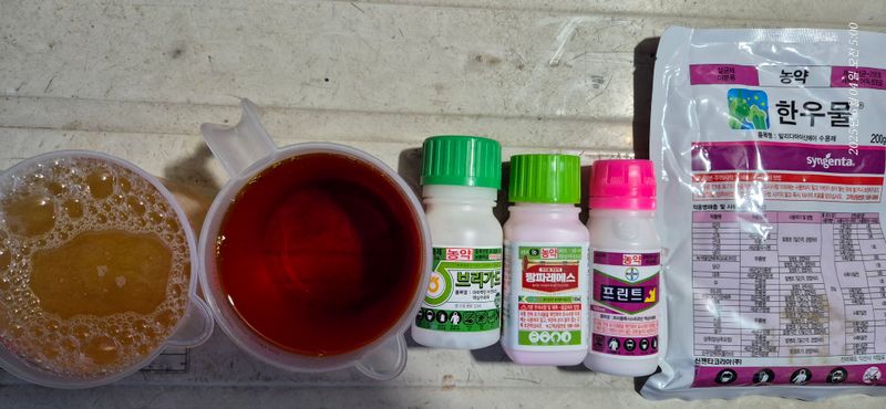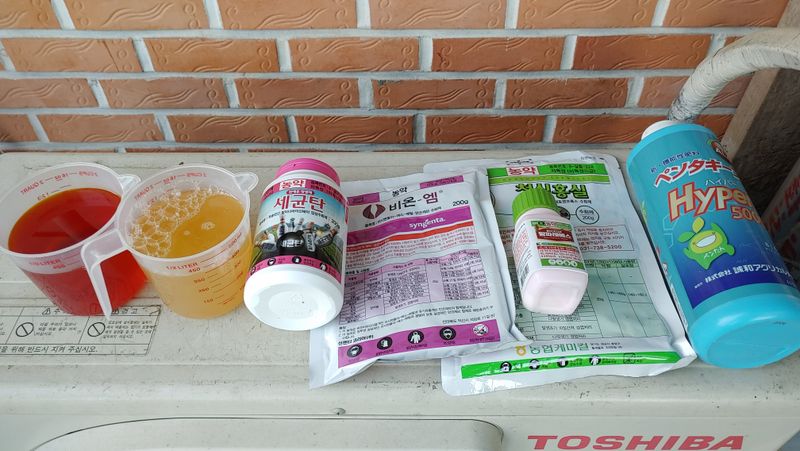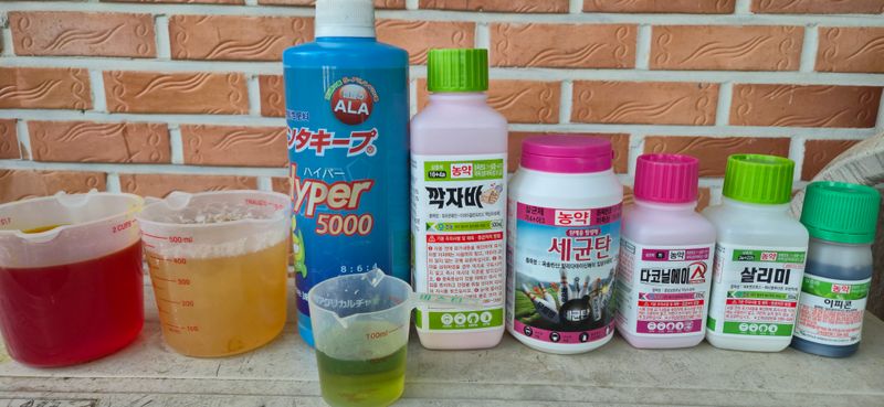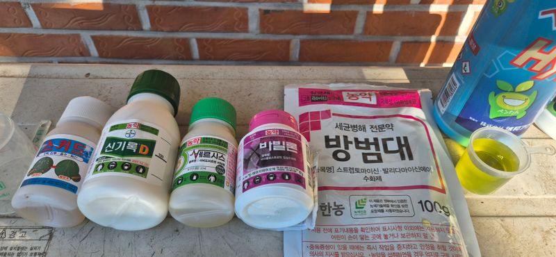 오전 9시 비예보~~~ 4시에 일어나서 병충해 방제 작업하는데... 빗방울이 ~~~ 에고 세균구멍병 탄저병 잿빛무늬병 응애 순나방 진딧뭉 노린재 ... + 침투확산제 + 양파발효액