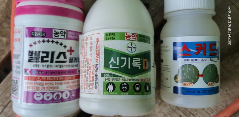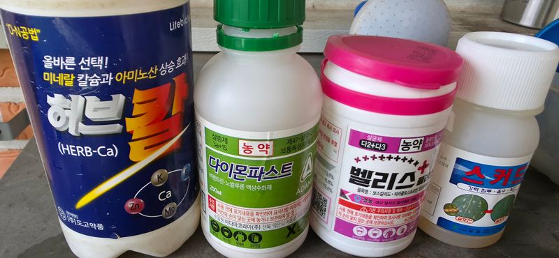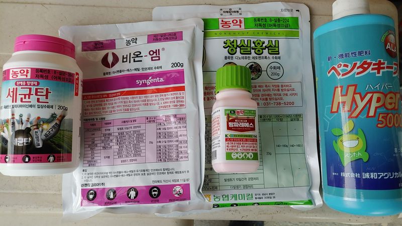 • 작년에 기술센터에서 보급해준「석회보르도액」으로 소독 완료. • 토양검사결과 ph가 조금 높게 나와서 석회보르도액을 사용하지않으려고 했는데... 작년에 「오갈병」이 많이 심해서 석회보르도액을 사용...