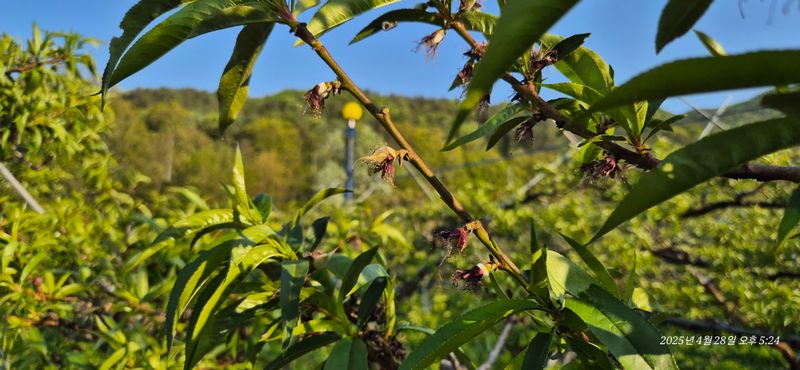 날망부부는 냉해 입은 복숭아🍑 포장 복숭아꽃에 [질산칼슘]으로 옆면 시비하고 꽃 솎기_적화 작업 계속합니다. https://m.blog.naver.com/okjaeook7/223837984476