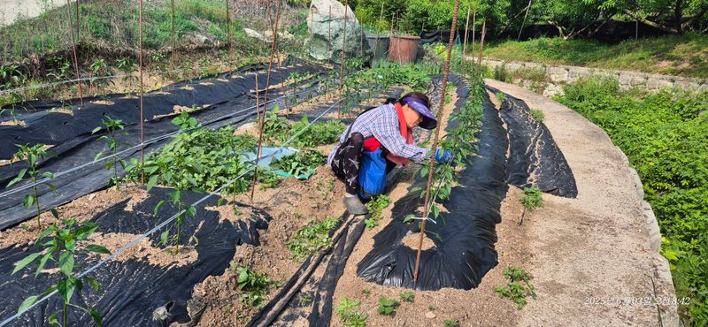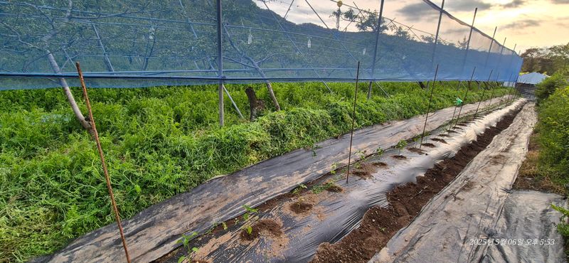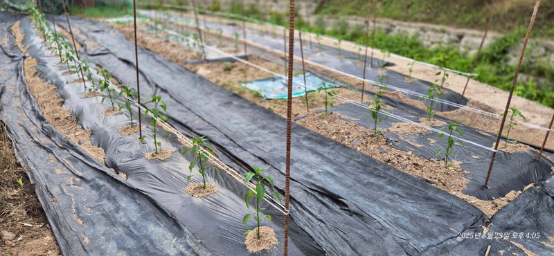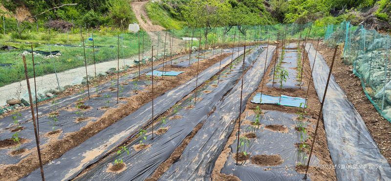 날망부부는 바쁩니다. 용택골드 복숭아 🍑 적과 작업 마치고, 고추 🌶 밭에 제초 매트 깔고 지주대 세우고, 참깨🌱 씨앗 파종하기 ~~~ https://m.blog.naver.com/okjaeook7/223857014254