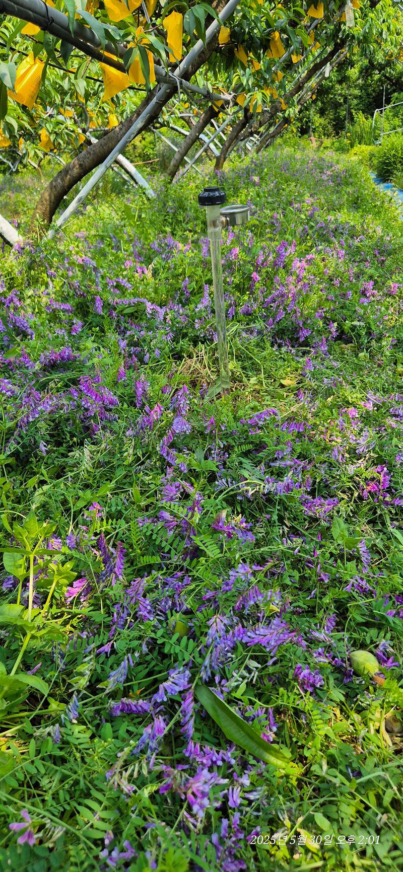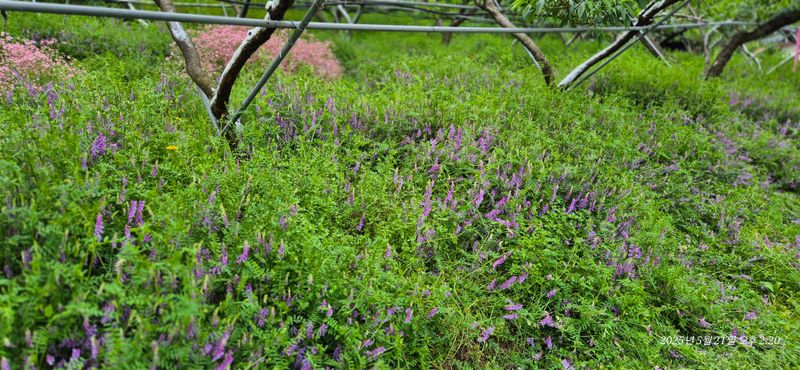 복숭아 🍑포장에 녹비작물로 키우고 있는 헤어리베치가 많이 자라서 눕히는 작업을 했습니다. #헤어리베치 https://m.blog.naver.com/okjaeook7/223845172952