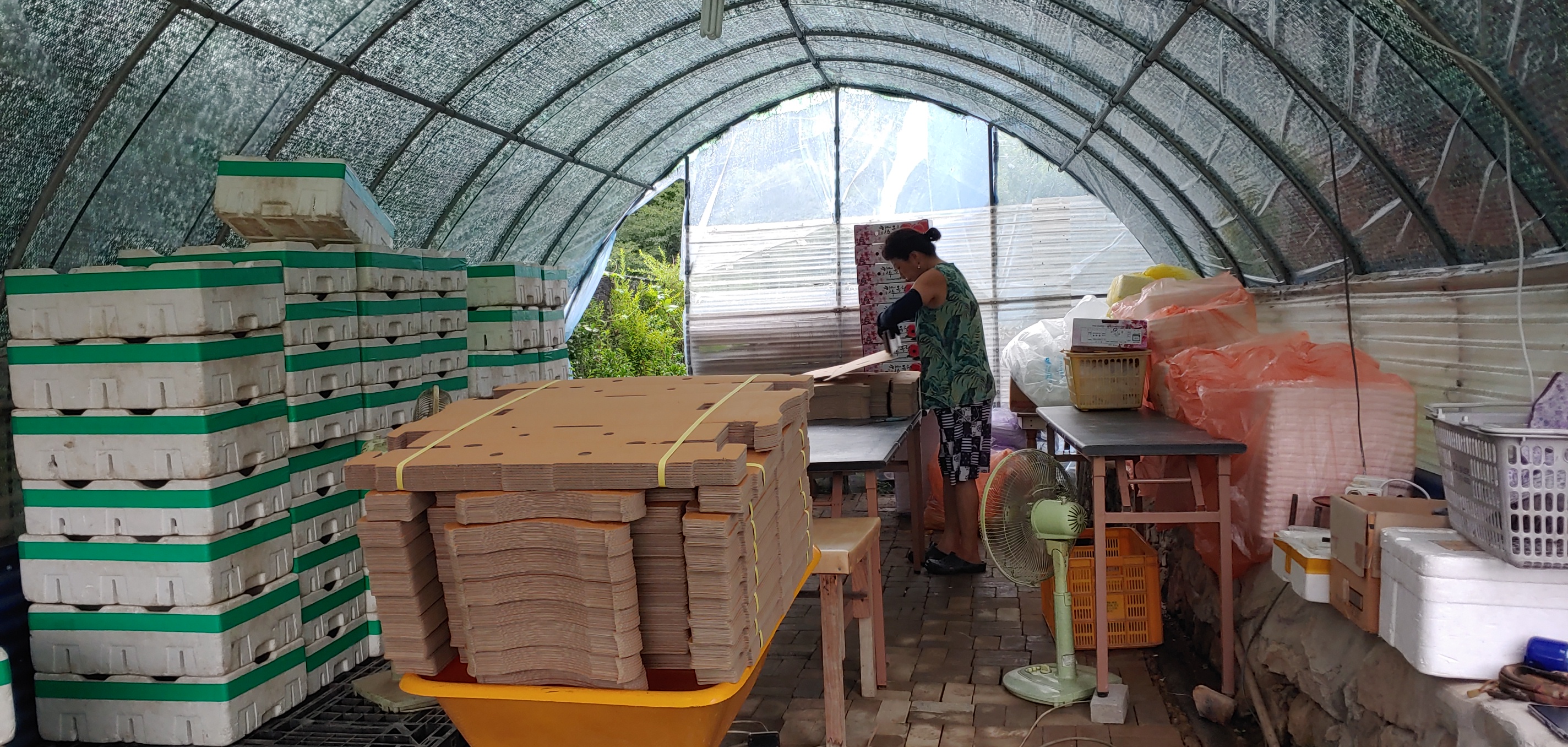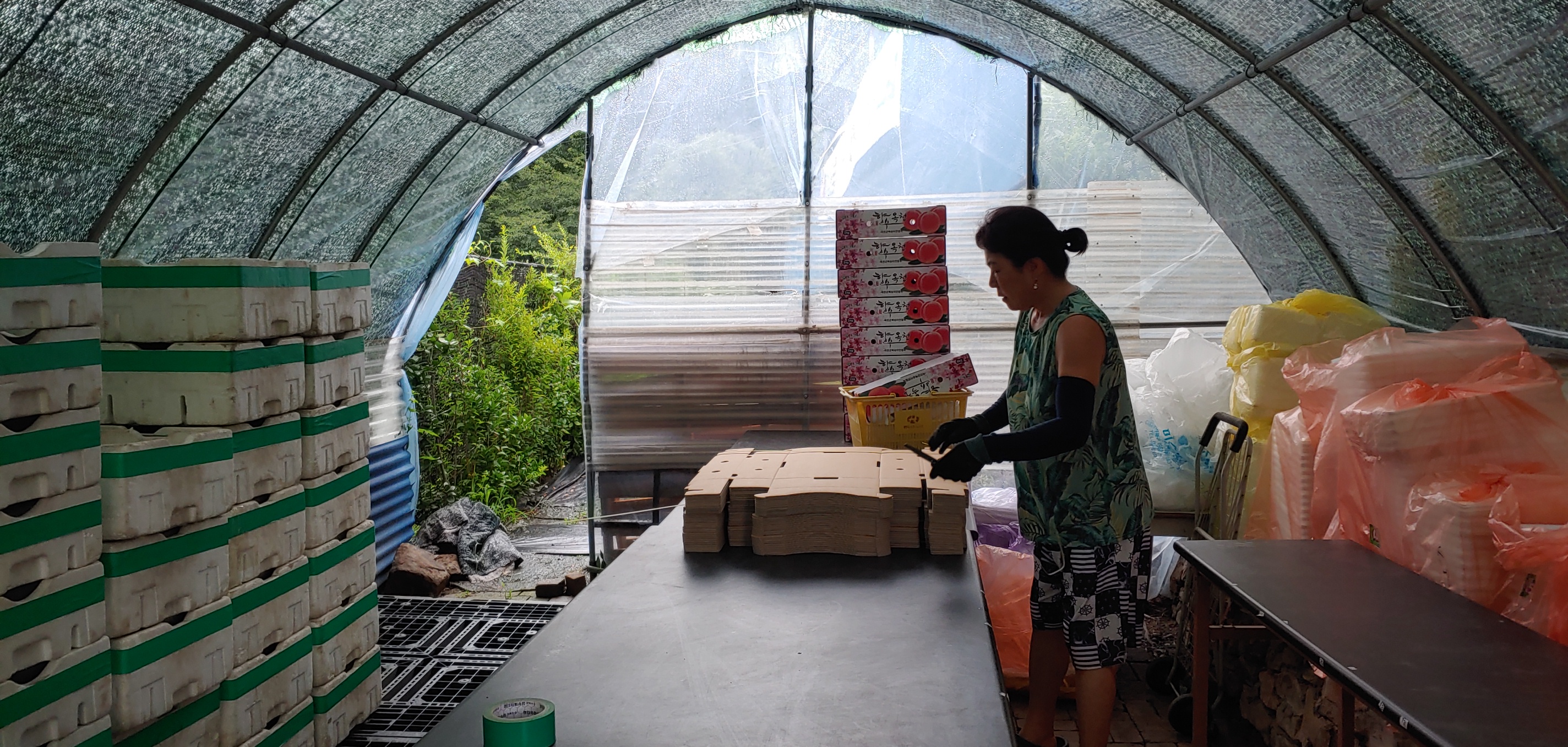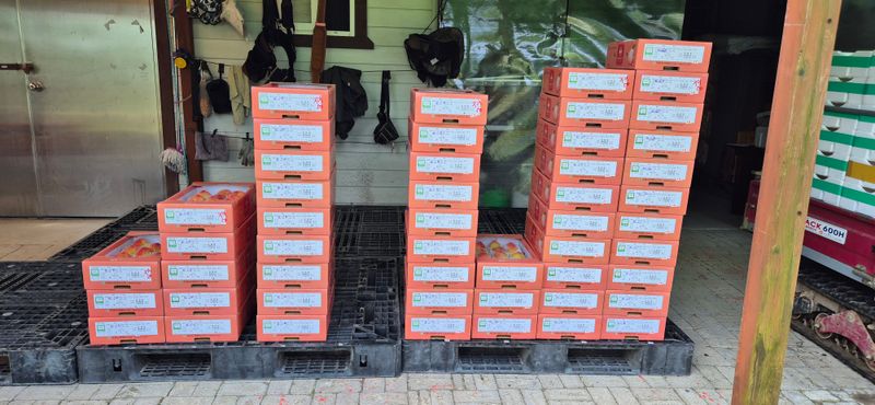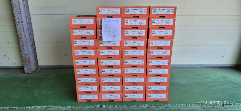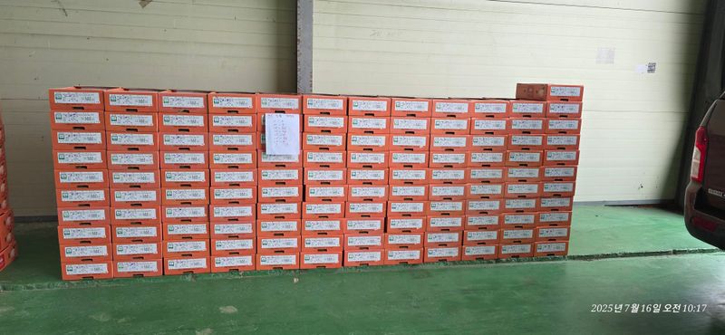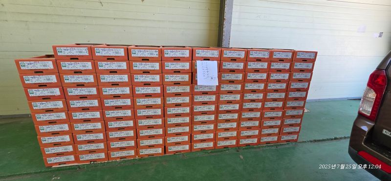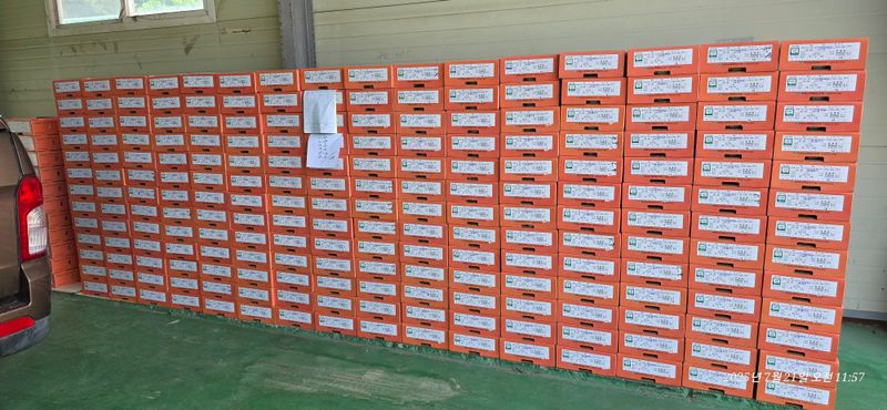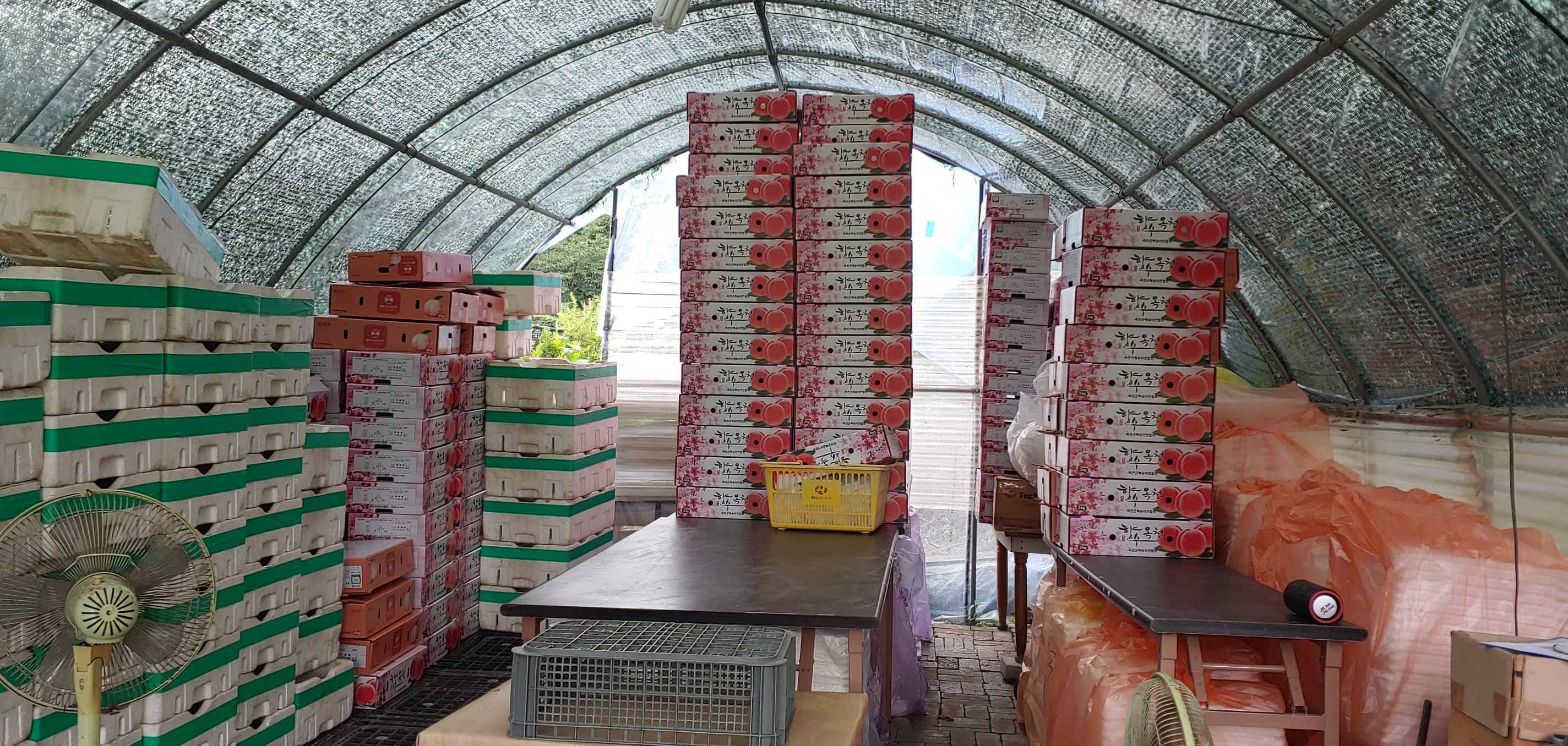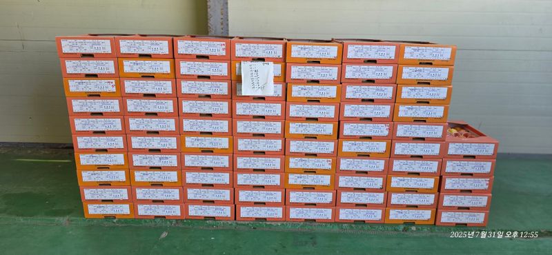 37°C가 넘어가는 폭염. 용택골드 수확 출하....