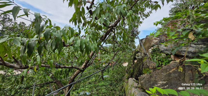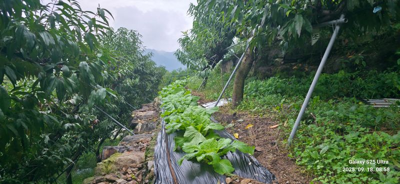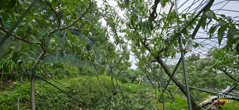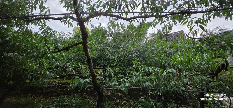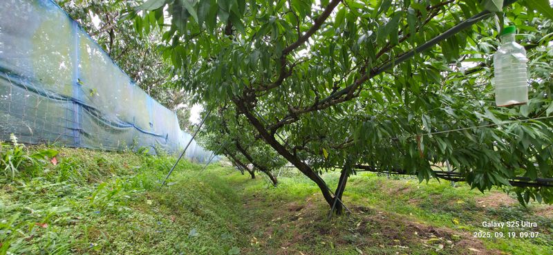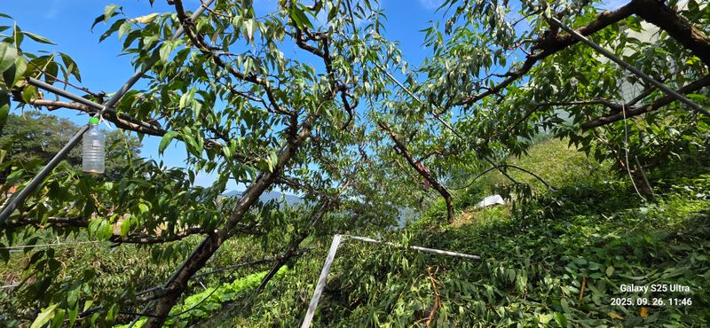 복숭아 🍑 Y자팔매트수형 결과지 절단 전정작업... 김장채소 친환경 달팽이 살충제 살포 .... 에탄올 3배수 물 희석 ...