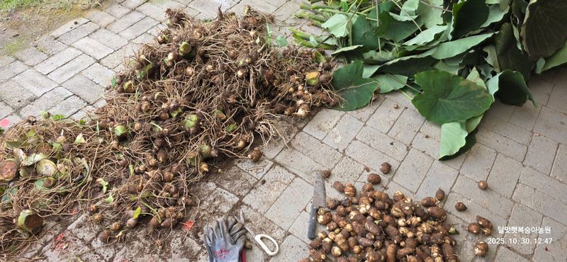 토란대 자르고, 토란 케고 선별한 후 건조하기... 토란 생육초기에 가뭄이 심해서 토란대가 많이 약하네요. https://m.blog.naver.com/okjaeook7/224059216748