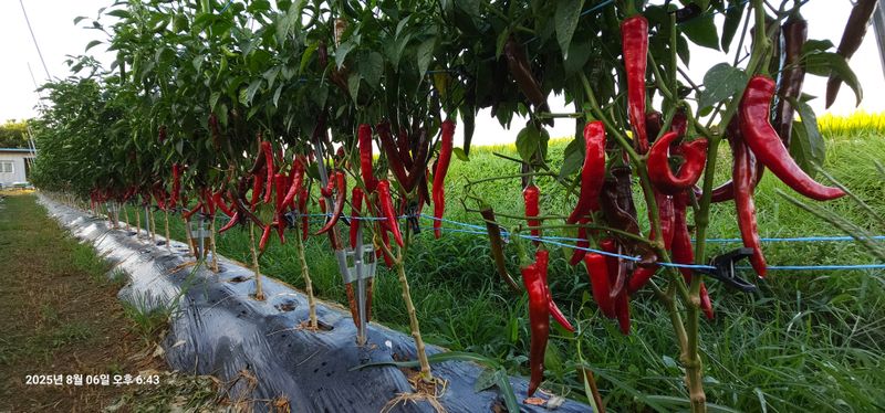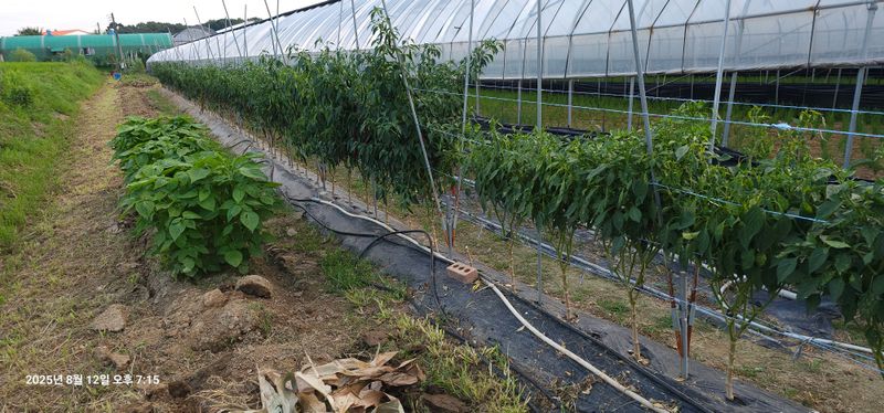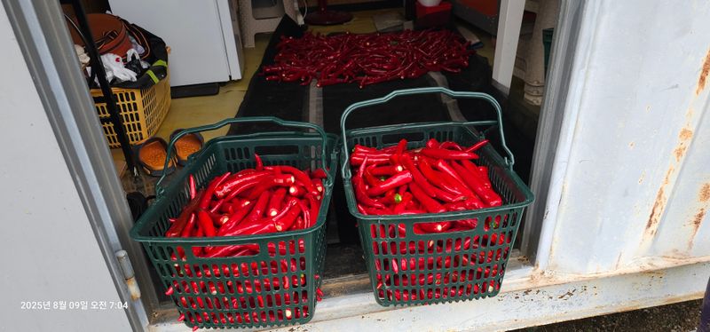 풍곡리 고추 두물 수확 2바구니 예초기작업 장기동 고구마 줄기 수확 호박 수확 애플수박 작은거포함 9개