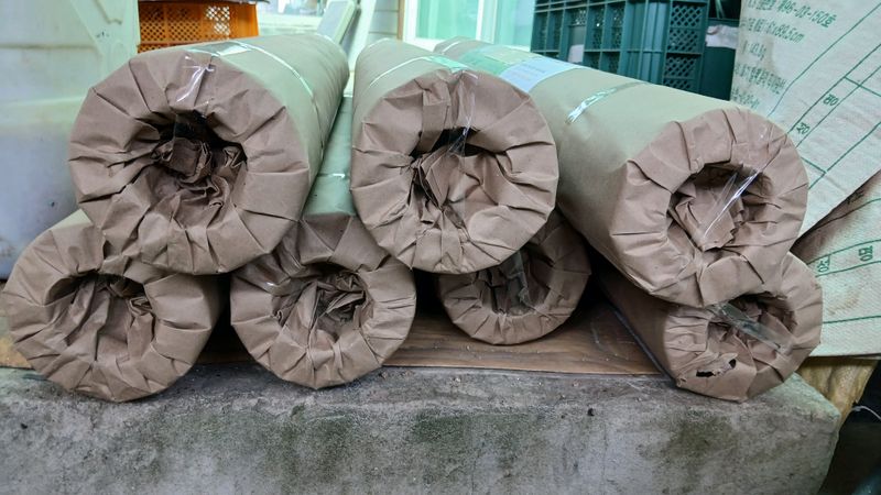 찰옥수수 밭 운남리207 문전옥답 25포 유기NK5 참편한유기농3포 살포 저온창고 자리 빠레트 90×110 32장 비닐 깔고 설치
