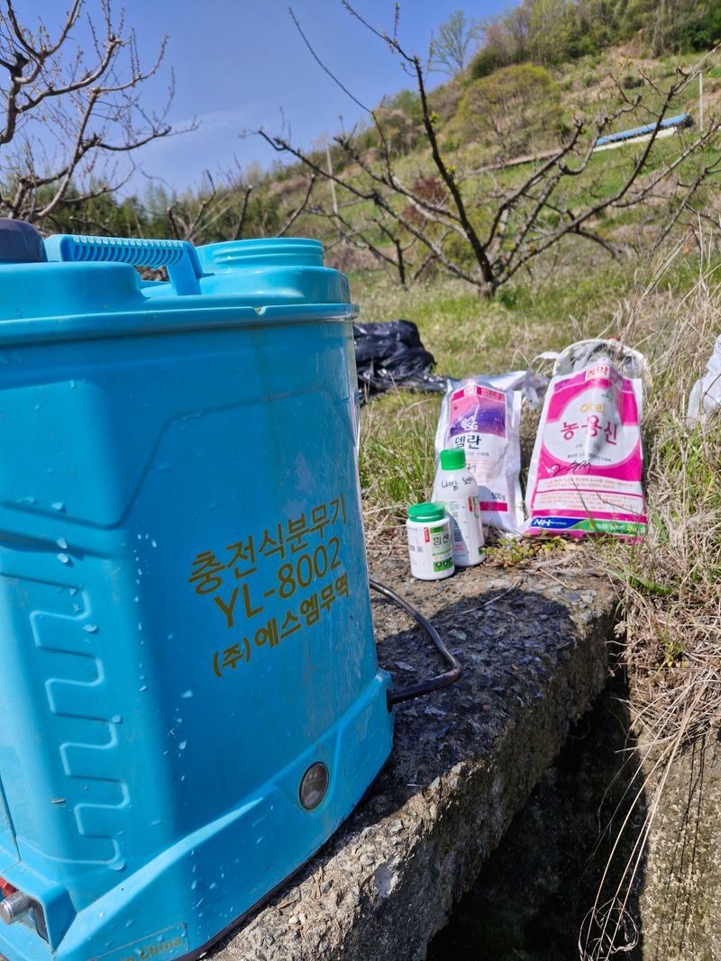 2차 매실나무 약 첫다 아침 이슬깨고난뒷 오늘 약다치고 내일은 고추랑 가지 오이 토마토 등등 심으르고 했는데 약 차다가 충전이 방전이되어서 조금남았는데 내일나머지 약치고 모종도 심어야겠다 집에오기전에 약통을 충전시켜놓고 왔다