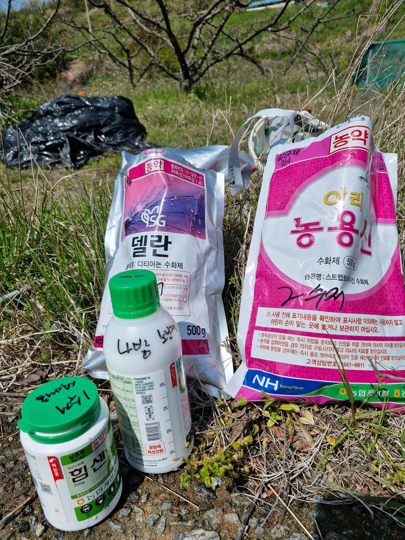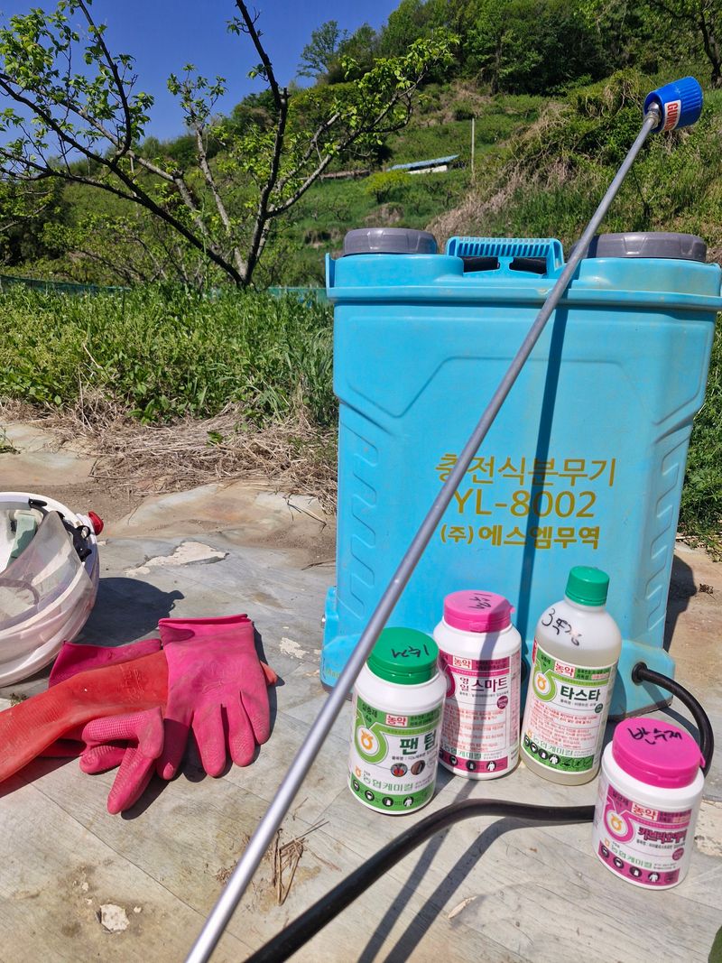 매실병충해 방제를 위해 10일 간격으로 농약살포 해야됩답니다 그래서 약 살포했어요 방제시기:4월 15일/25일/30일/5월5일 1차 살포했습니다