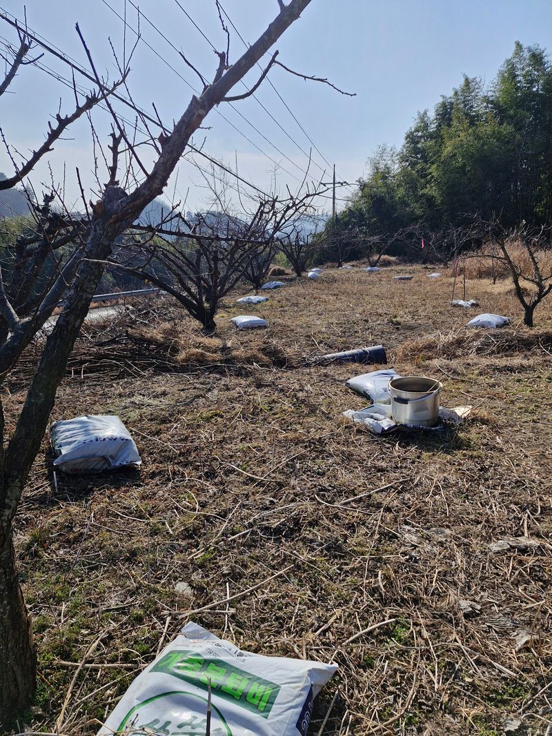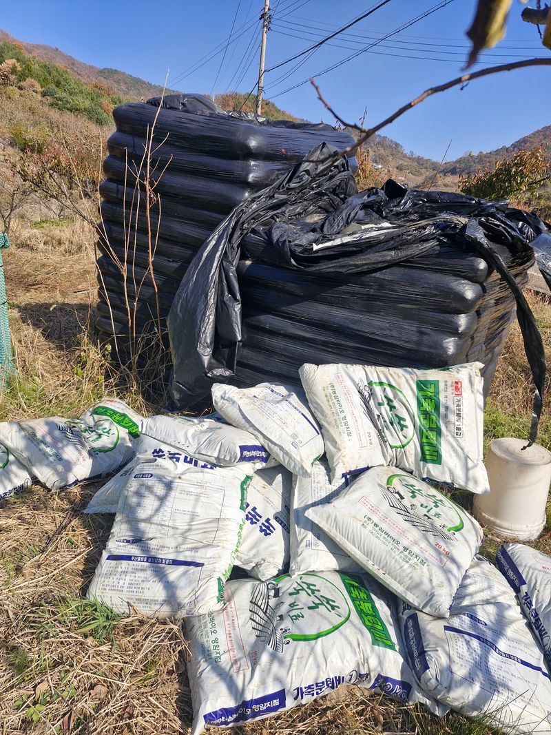 매실나무가지치기는 끝나고 거름을 나무마다 같다놓았다 아직 반정도는 못갔다놓고 시간날때 해야지