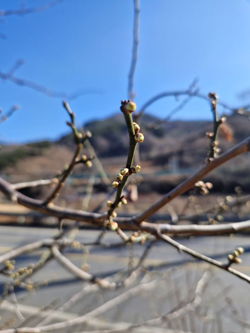 거름주고 남은것을 하러갔는데 거름이 꽁꽁어러서 그냥두고 돌배나무가 너무커서 전선에까지 다았다 나무에올라가서 자르고나니 팔이 아프다 매실밭을 이리저리 돌아다니다보니 매실꽃봉우리가 맺혀서 곳 필것같이 보인다 어영부영하다보면 곳 봄은오겠지 ᆢ