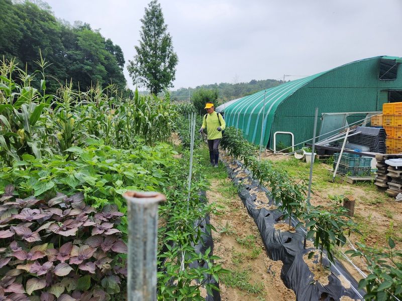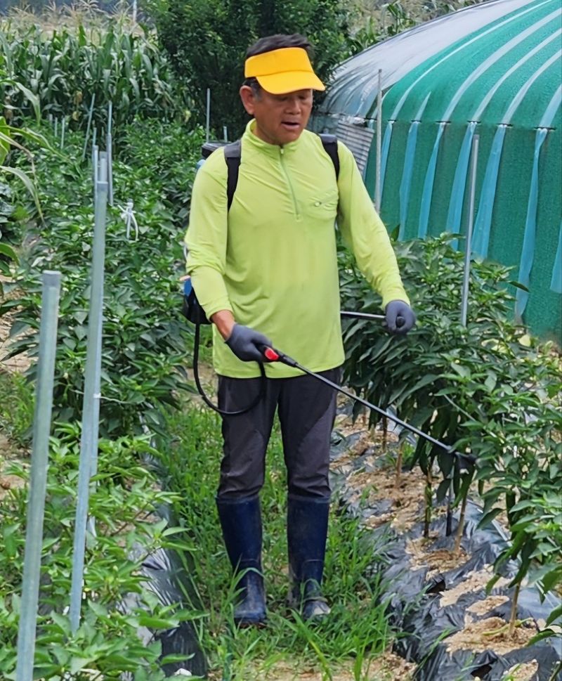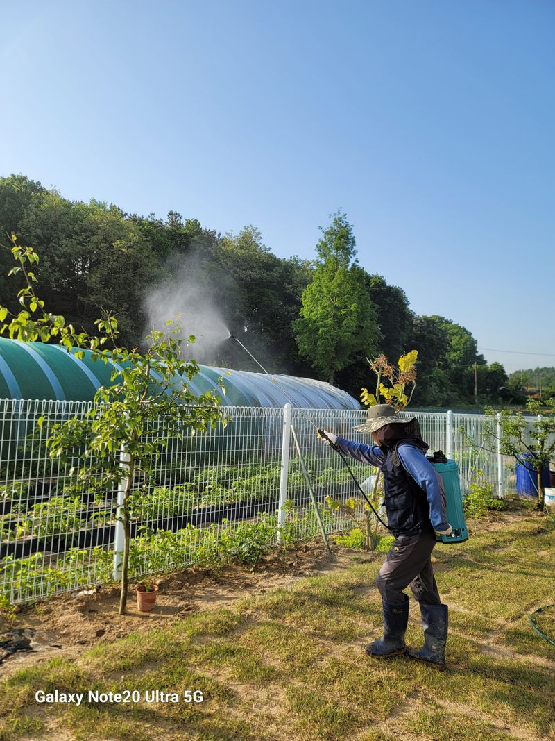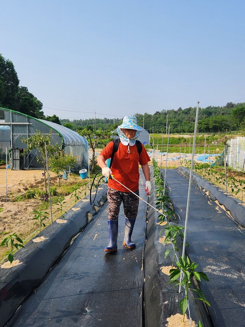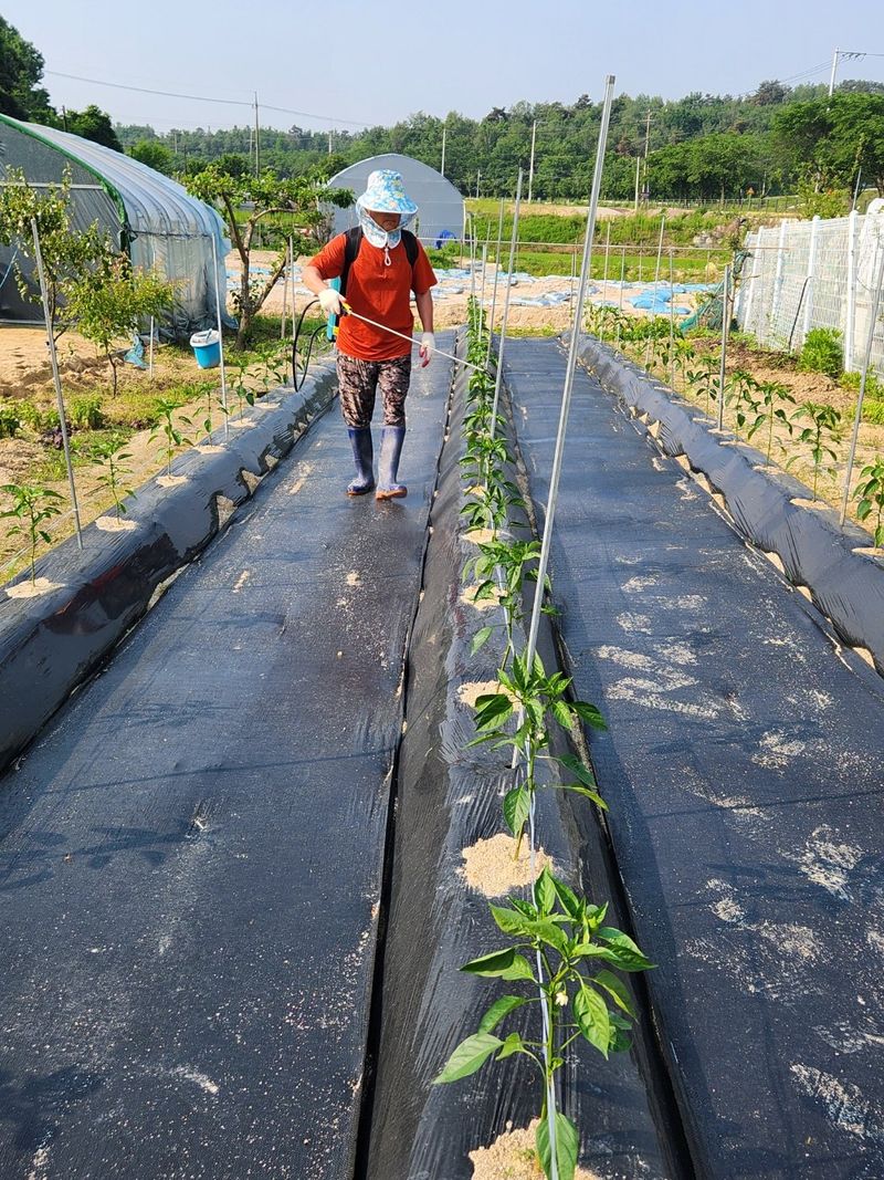 고추에 탄저병.살균,살충제 주기 요즘처럼 비가 오라카락하면 일주일 간격으로 예방과 영양제를 교대로 주고있습니다 .
