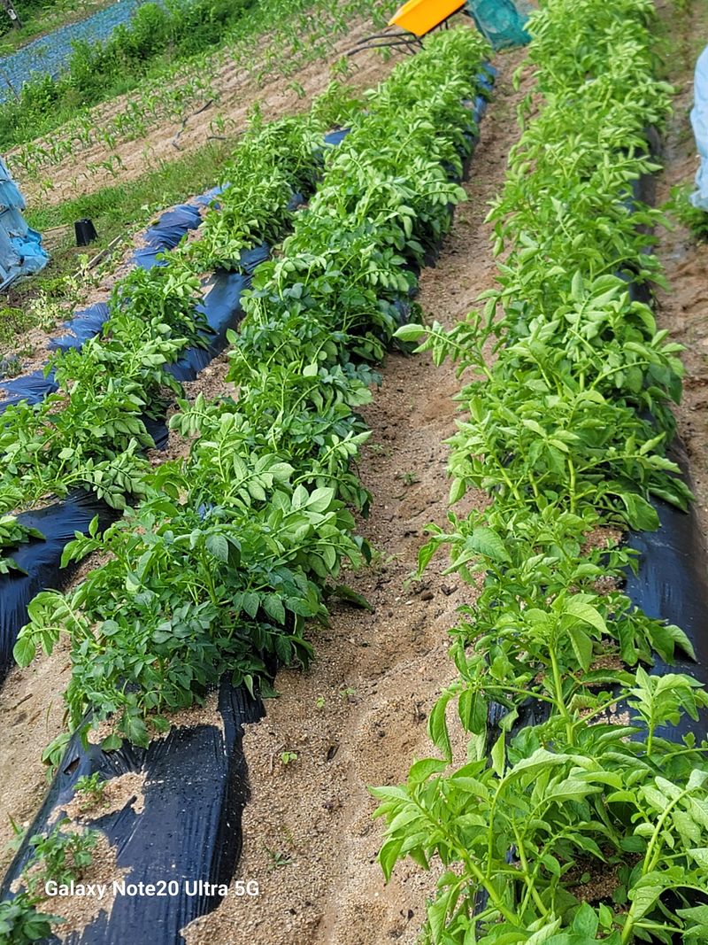 16일 새벽 비바람으로 감자 쓰러짐 살짝 바로세움