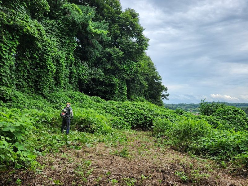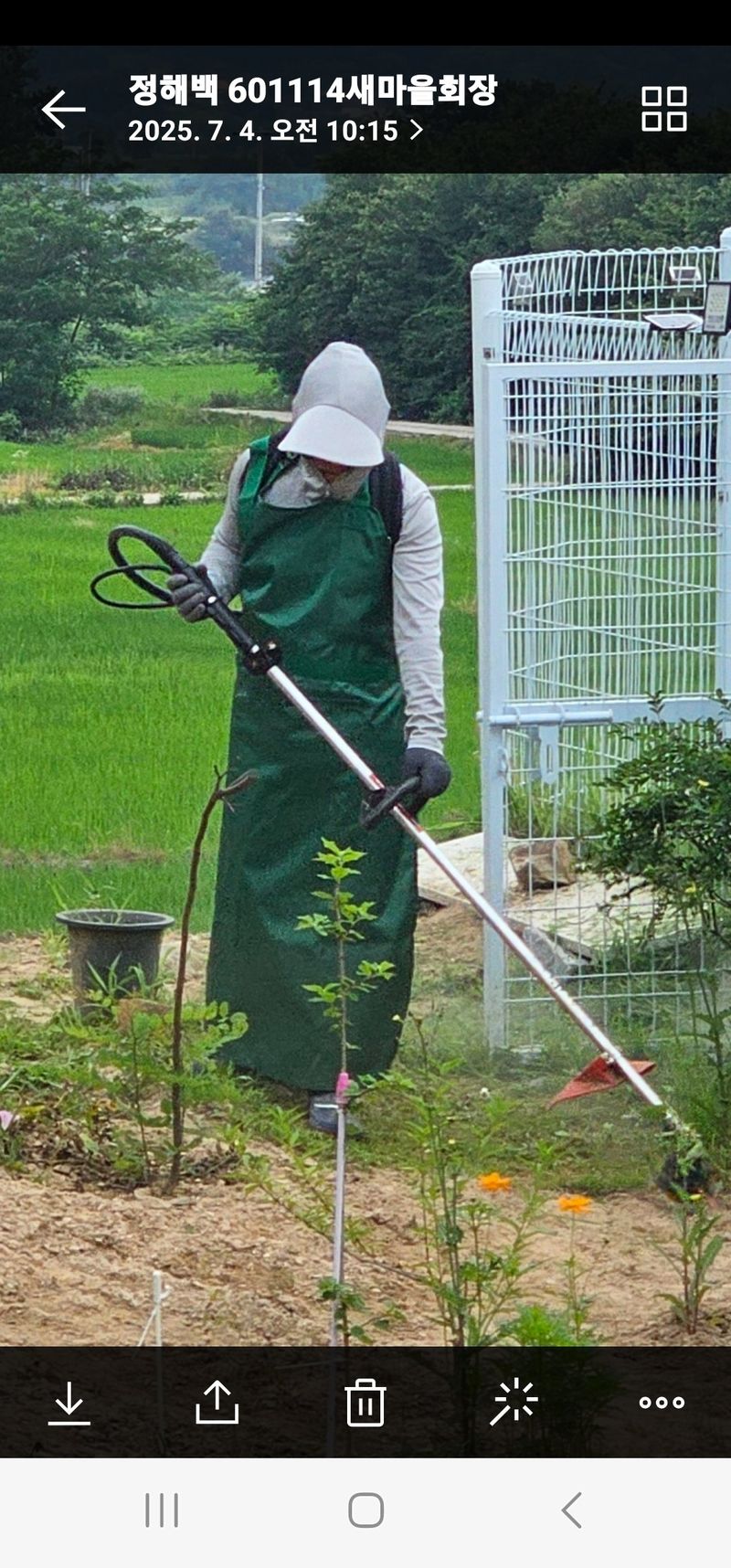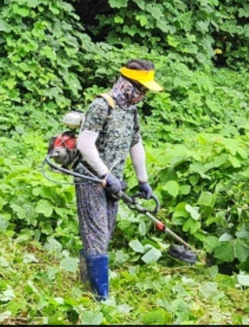 들깨밭 잡초제거 하기위해 예초기 작업함 . 밭 주변, 경계선따라 가을 옥수수 파종