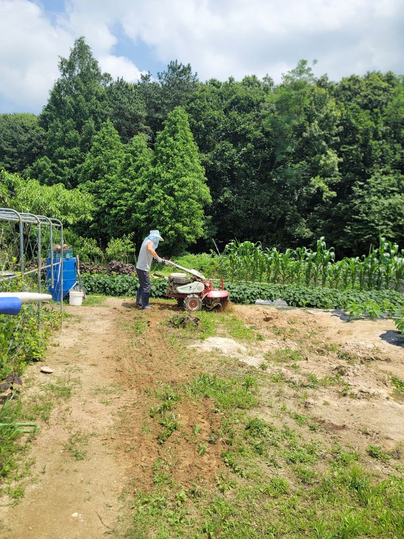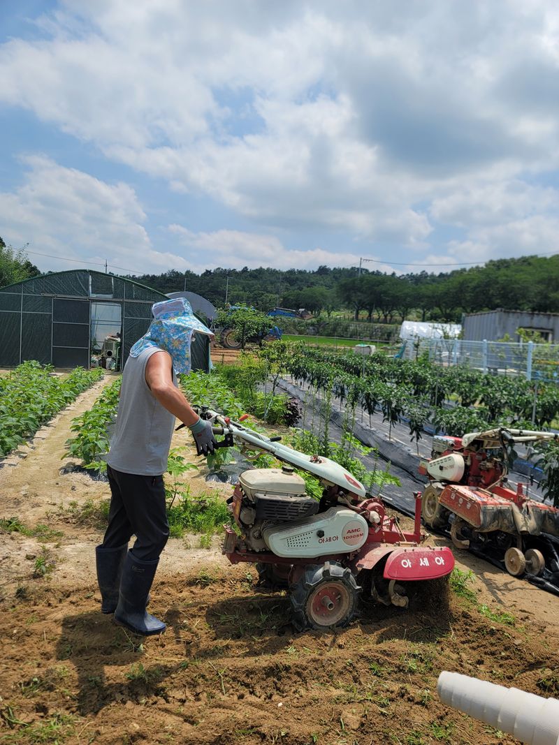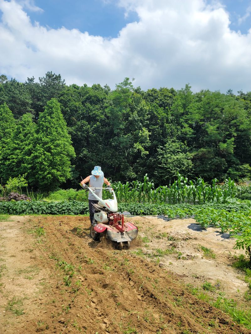 로터리작업 추가로 들깨심으려고 짜투리농지를 관리기로 로터리 침 32도 폭염주의보도 무시하고 내 스타일대로 작업함