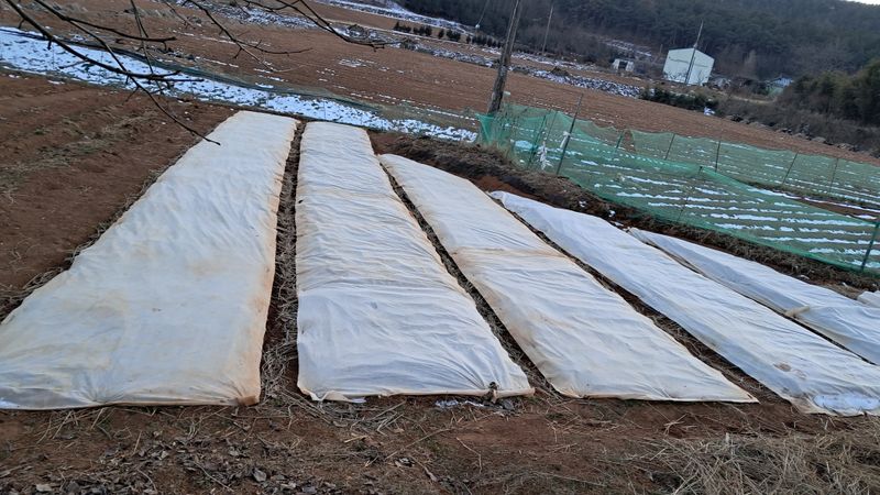 지금은 거이 일이 끝나서 별로 할게 없네요. 마늘에 볏짚 덥어주고 부직포 덥었는데 잘 자라주길 바라네요.