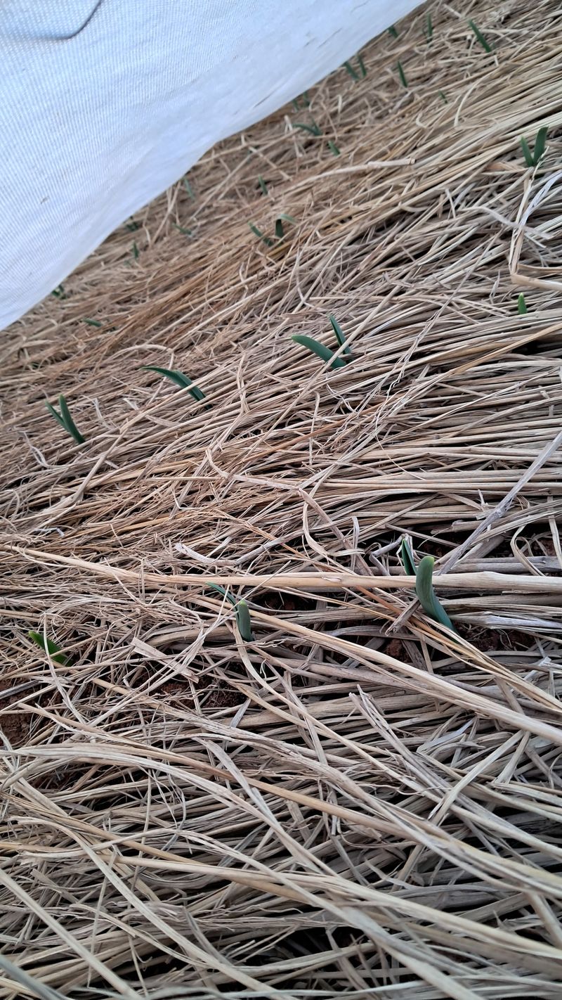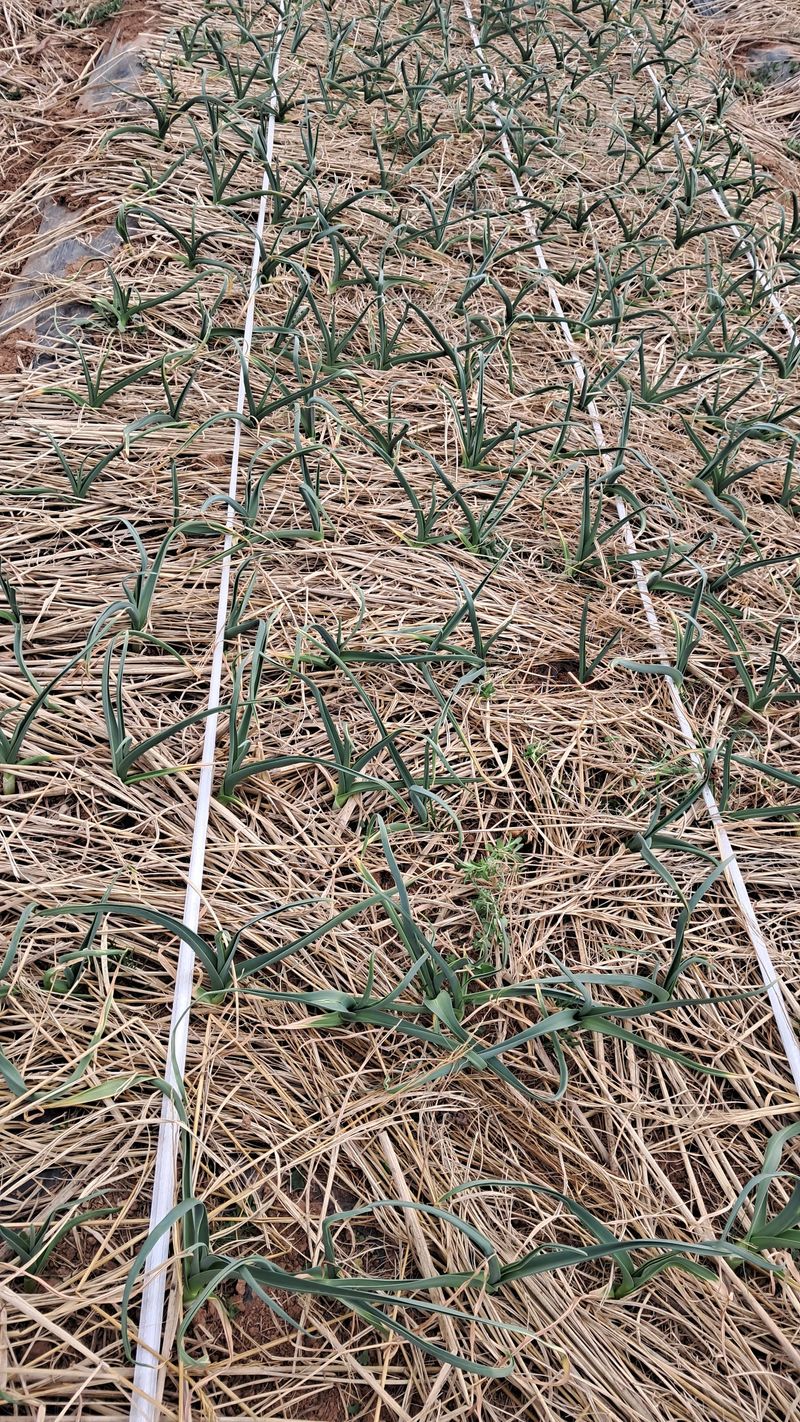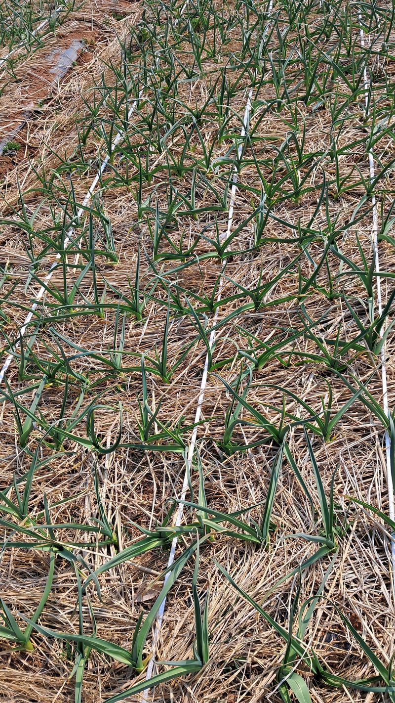 날씨가 많이 좋아져서 마늘밭 부직포 열어보니 마늘이 추운날씨에도 잘 자라준것같다