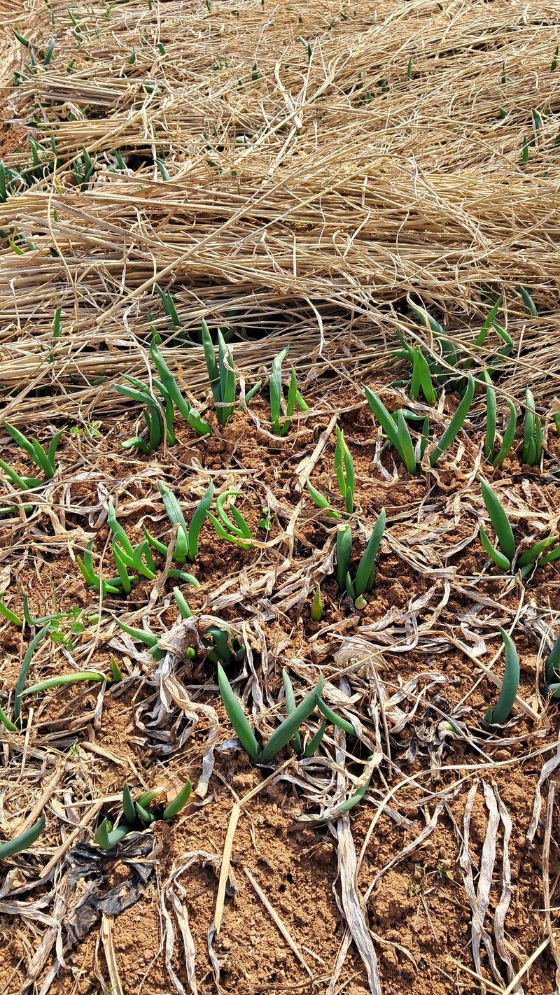 감자밭에 싹이 하나 둘씩 올라오기 시작해서 고량에 제초제 뿌려주었음. 마늘은 잘 자라고 있음 더덕도 싹이 나오기 시작함