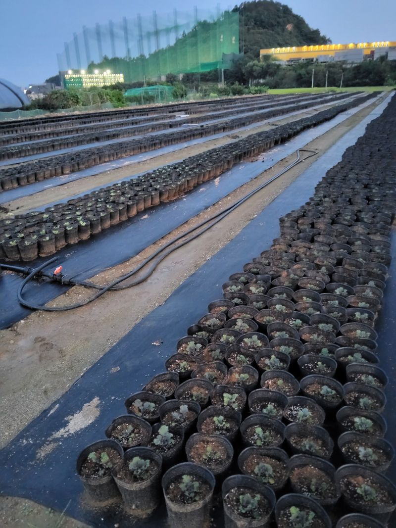 맥문동10.000개 내놓고 실어주고 점심먹고 녹영금 분갈이 마편초 프러그에심고 아침 영상 2도 흐림 낯에도 쌀쌀 해젔어요.