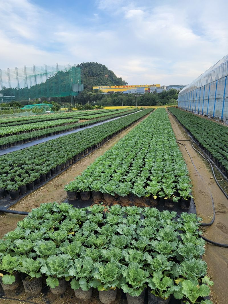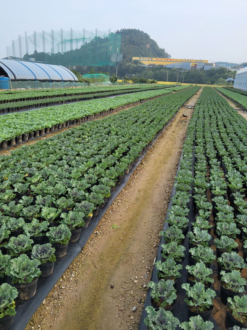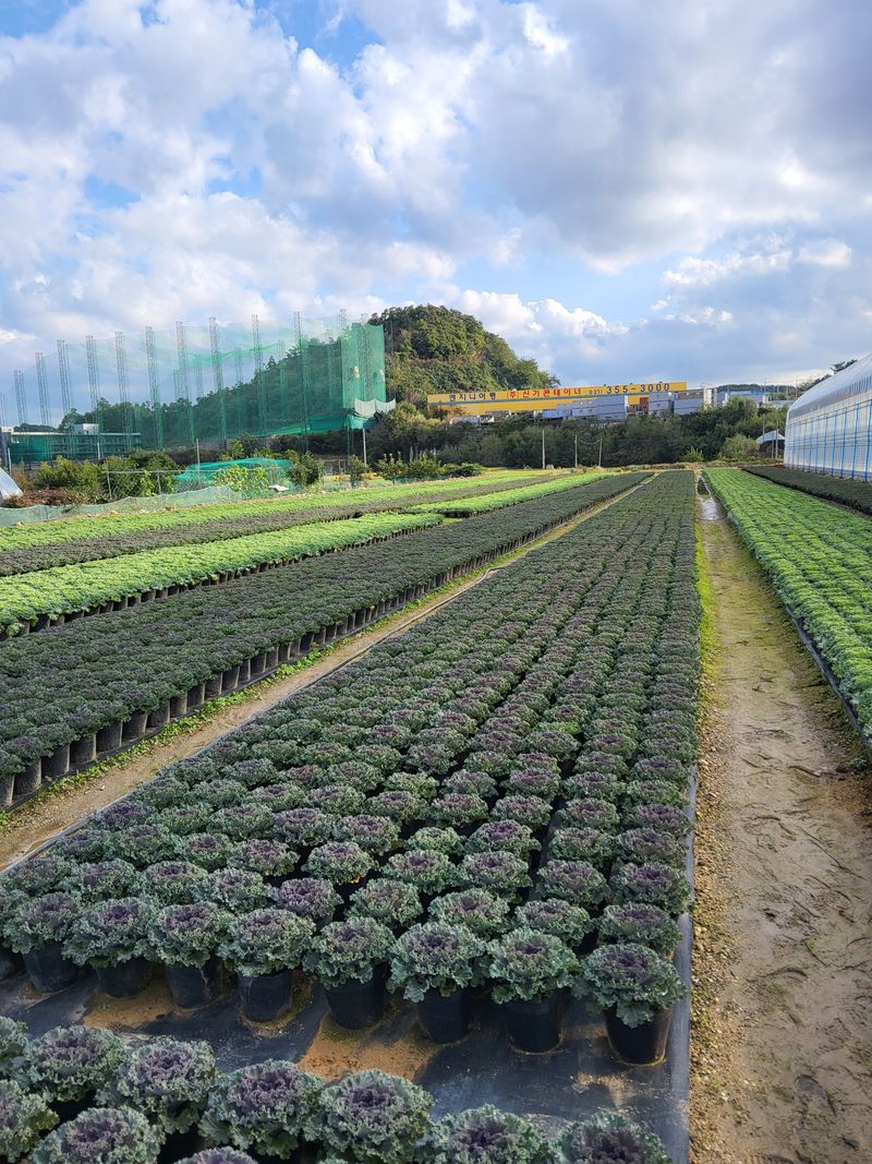 미니 꽃배추 50짝 담고 점심먹고 미니 꽃배추 짝에담고 마편초 프러그에심고 아침 영상 1도 맑음 구름조금