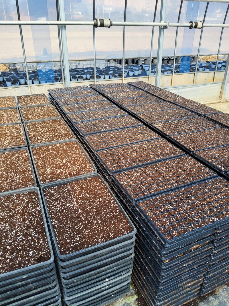 맥문동 2치반에 씨앗넣고 점심먹고 맥문동 2치반에 씨앗넣고 아침 영하 12도 맑음 밖에는 추운데 온실안은 땀이난다.