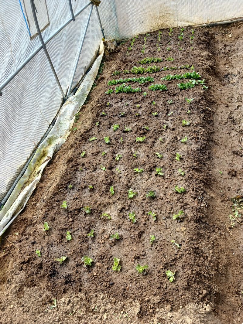 마늘.양파터널비닐 제거 상추이식(전년가을에 씨뿌려 성장한 상추)