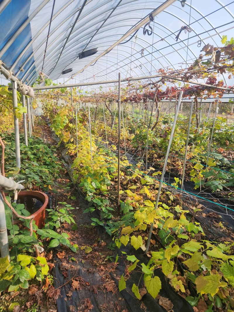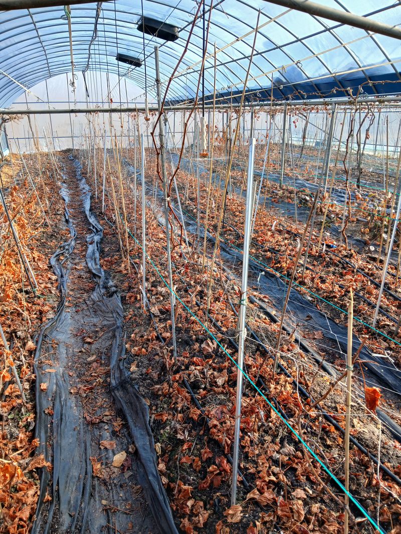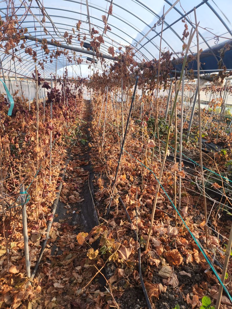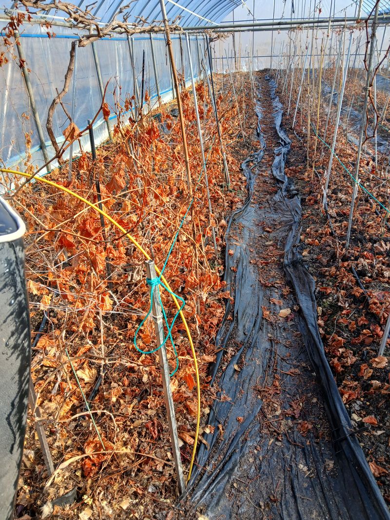 경남 지방은 오늘 영하로 내려가고 있네요 하우스 안에는 비가 오지 않아서 물을 보름 정도에 한 번씩 1시간씩 물을 주고 있습니다 재배하는 작물은 블랙 사파이어 퀸이나 대 황옥 코튼캔디 솜사탕 마이 하트 흑보석 올해 처음 나온 신품종 캠벨 615 묘목은 6월 중순 6월...