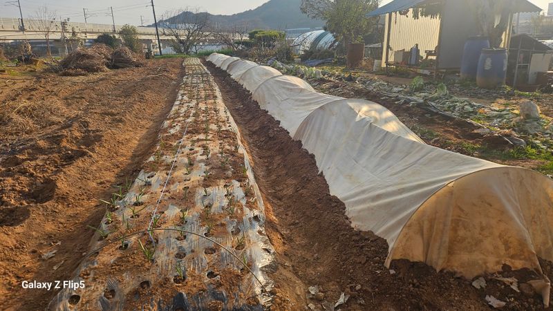 요즘 날씨 포근하여 망설이다 조금 이른감 있지만 겨울나기 위하여 물 뿌리고ㆍ비료주고 보온작업 마치었지요.