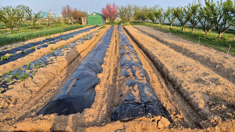 고추 고랑 멀칭작업 블루베리 5주 전용화분 설치