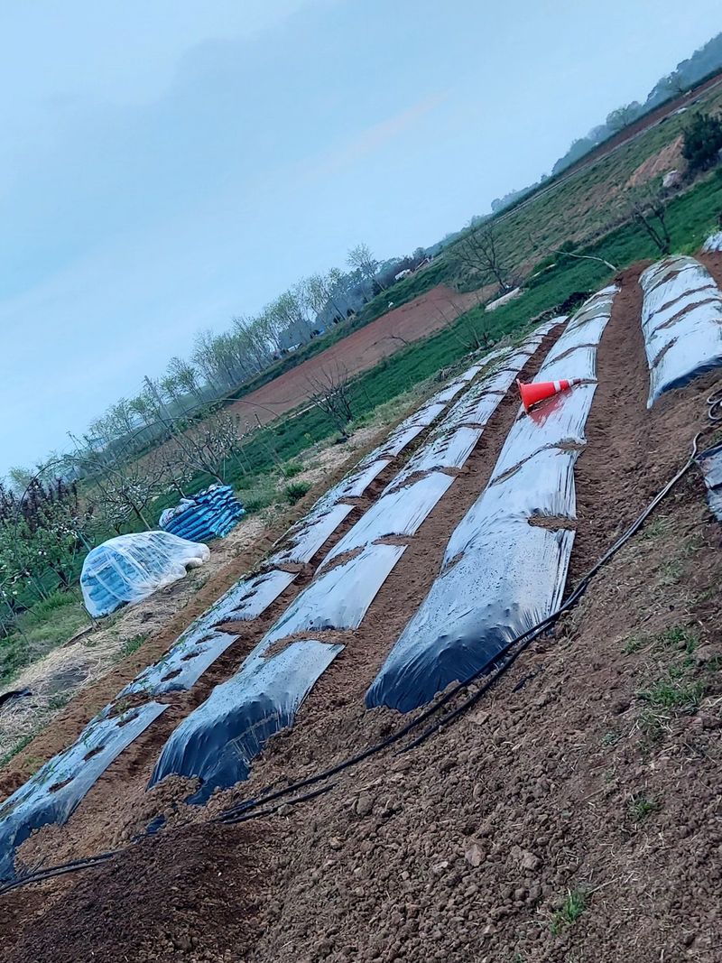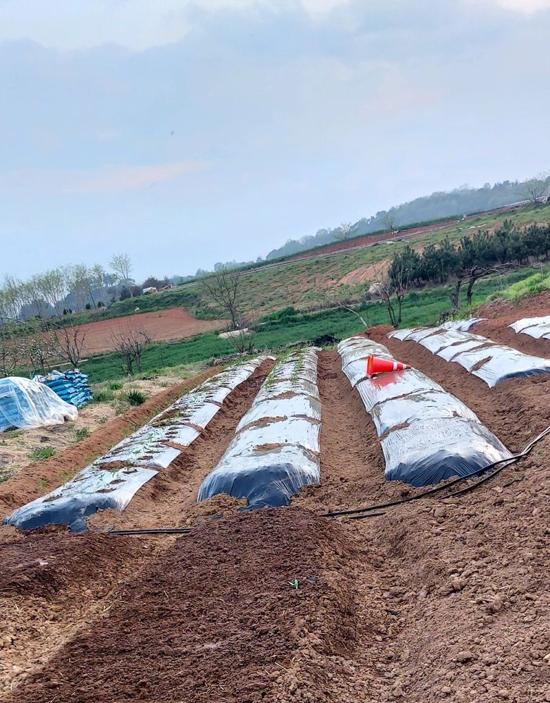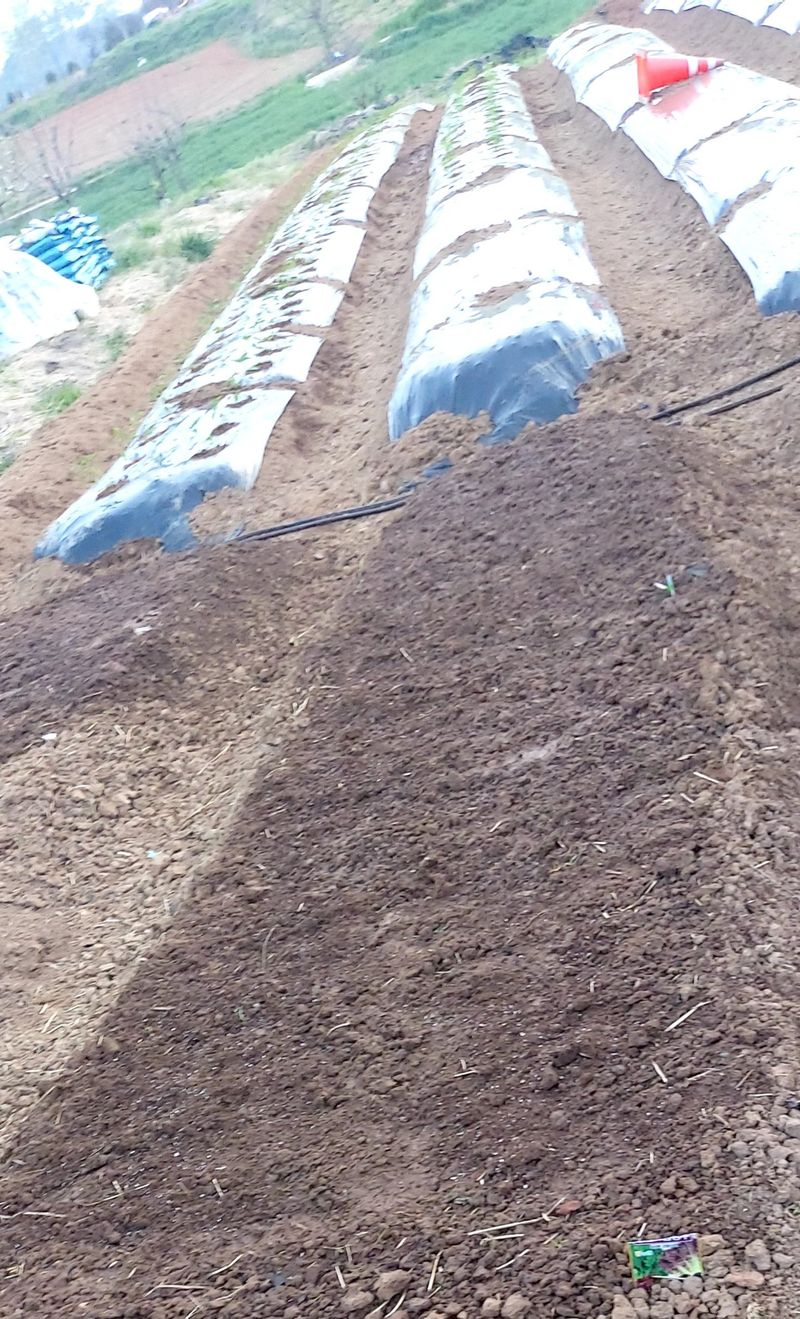 과수밭 둘레 물빠짐을위해외국인 노동자 와 이랑파기 과수밭거름주기 고추심을곳 거름주기 힘들다