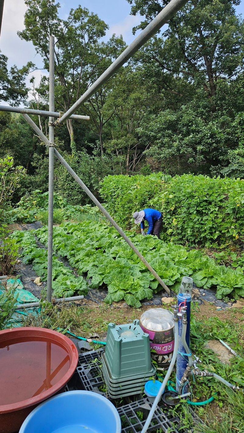 배추에 달팽이 가 유독 심하다. 달팽이 를 잡았다