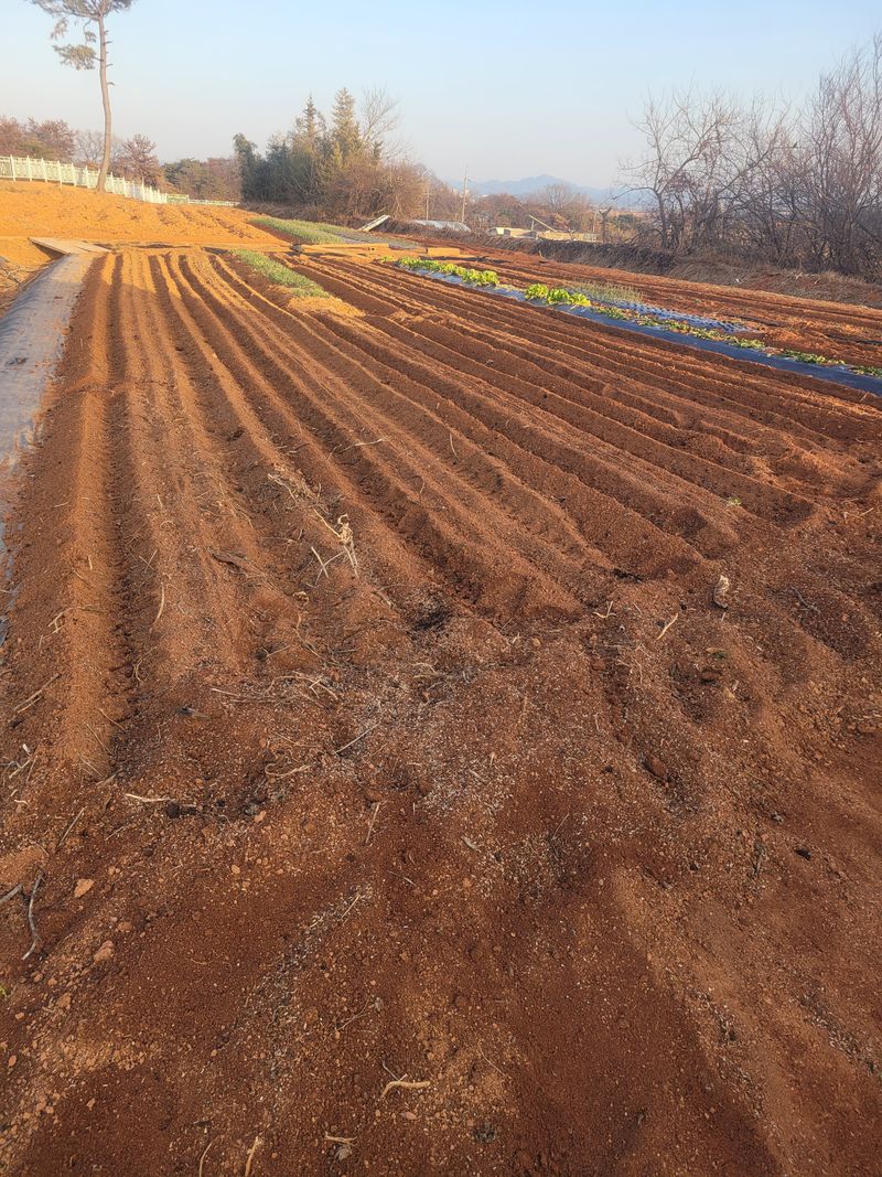 고추밭 석회고토.용성인비 살포하고 로터리 했습니다.