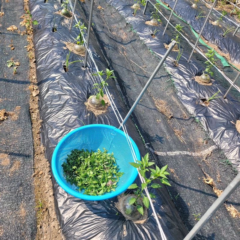 고추밭비닐 고랑사이부직포제거 새나리투거름 고추전요 비료 살포