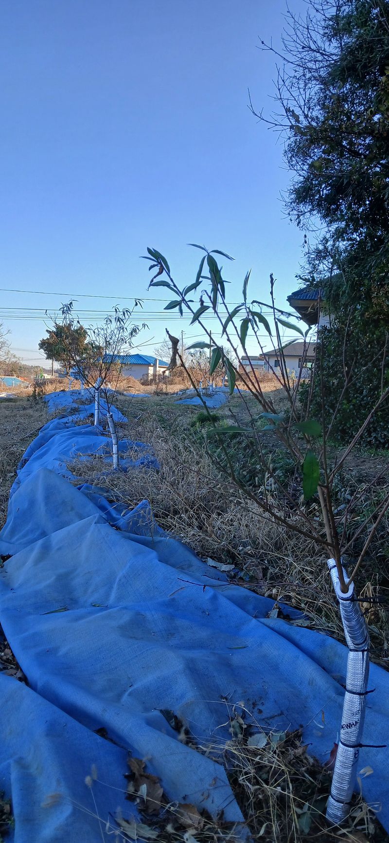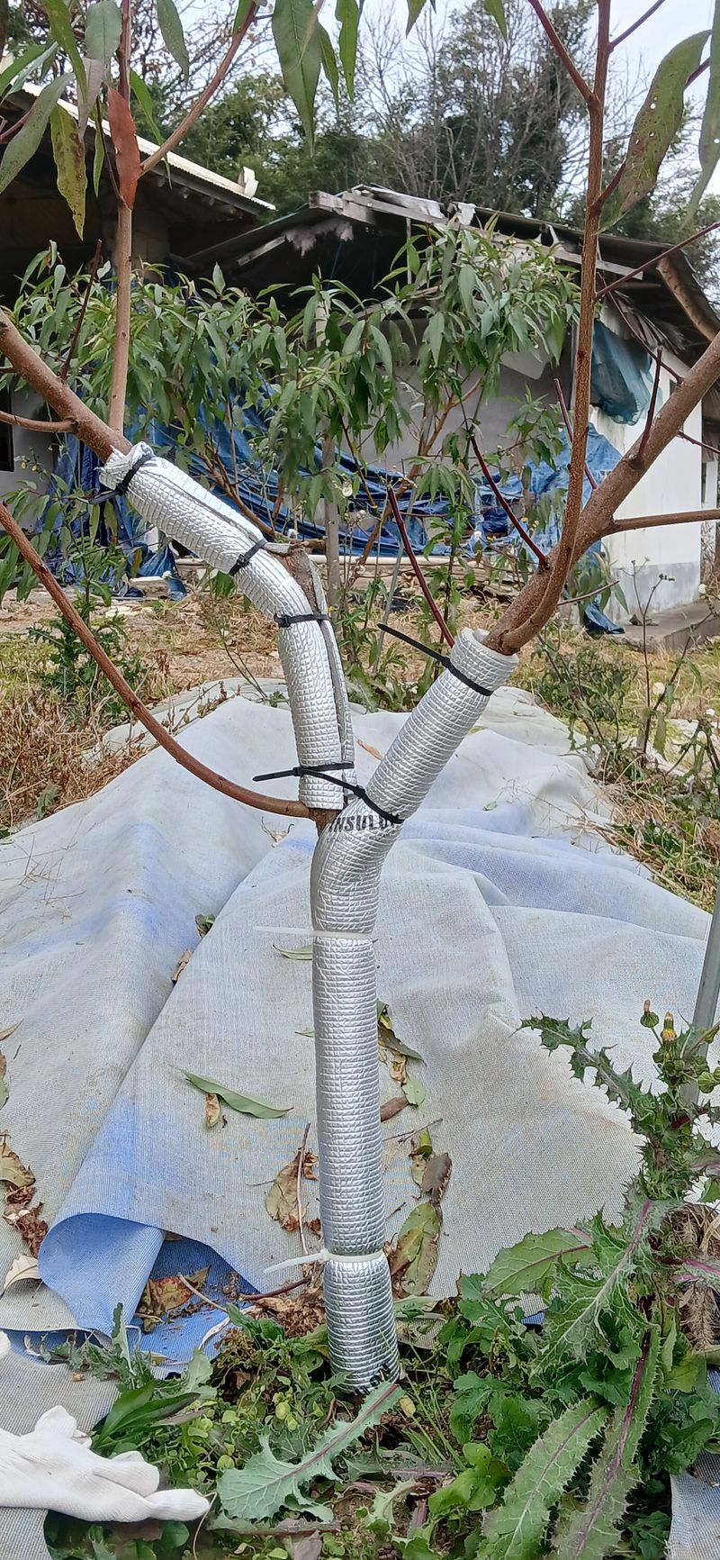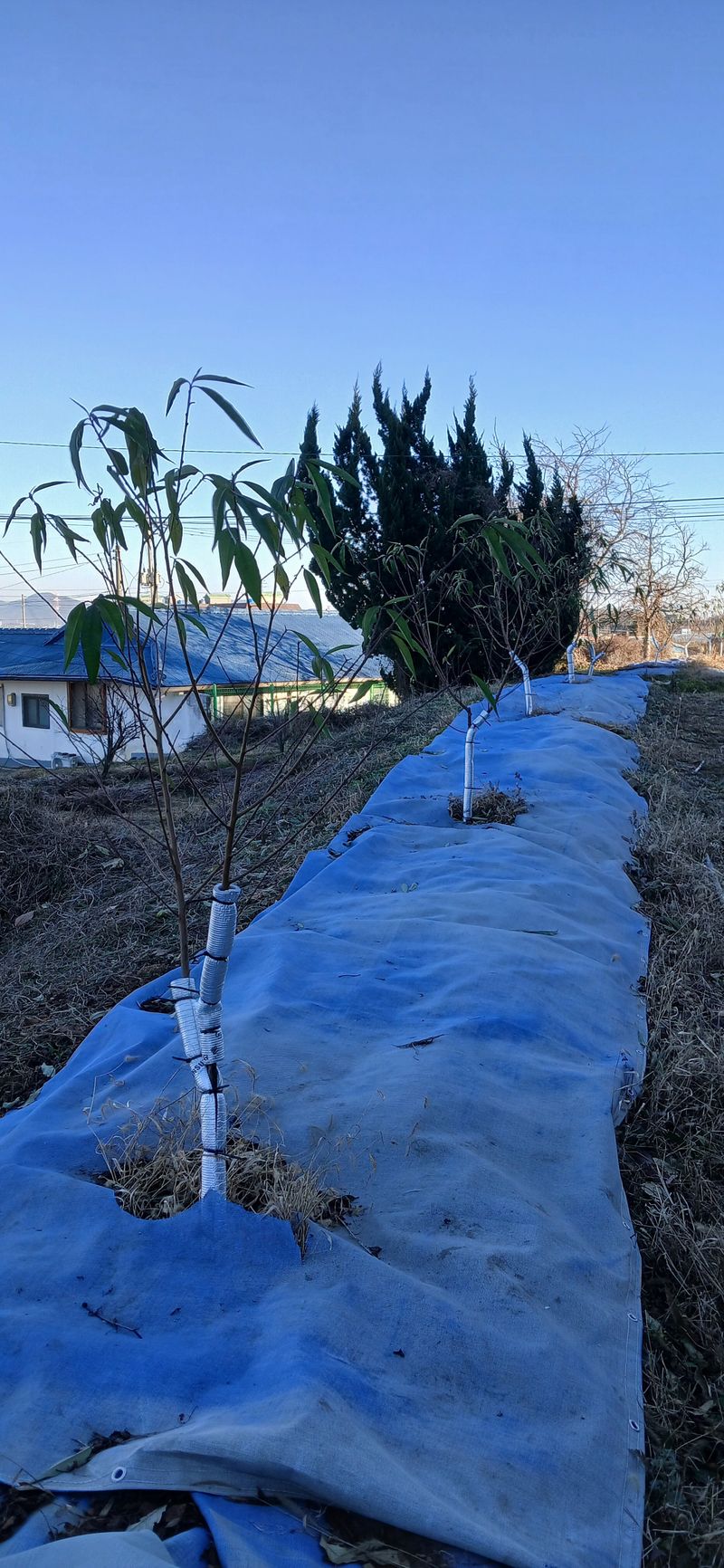 1년생 묘목 동사예방을 위한 묘목 보온 싸주기 - 날씨가 추워 어린나무 동사가 우려됨