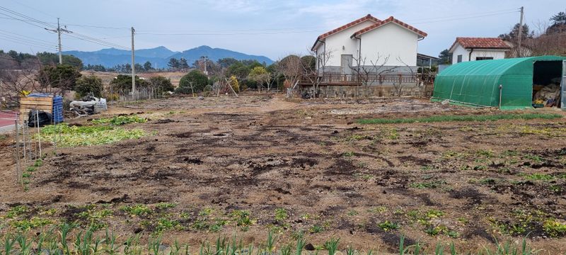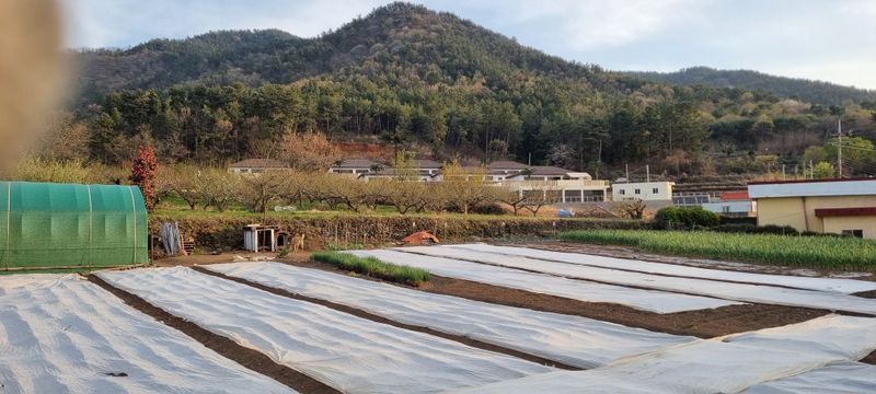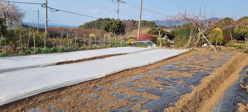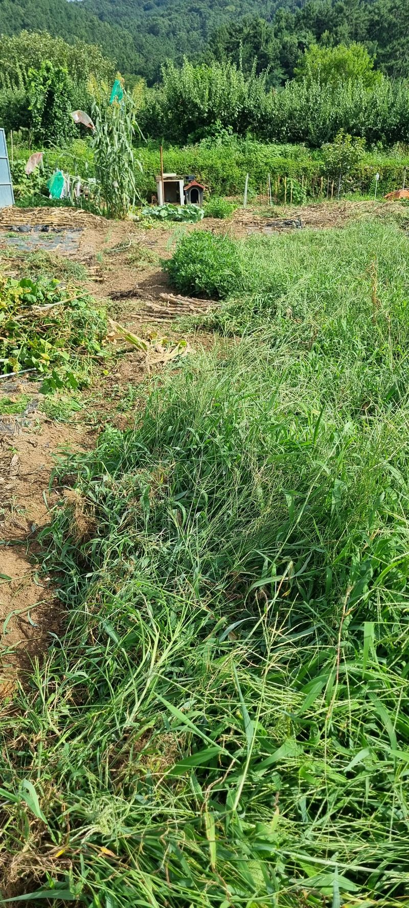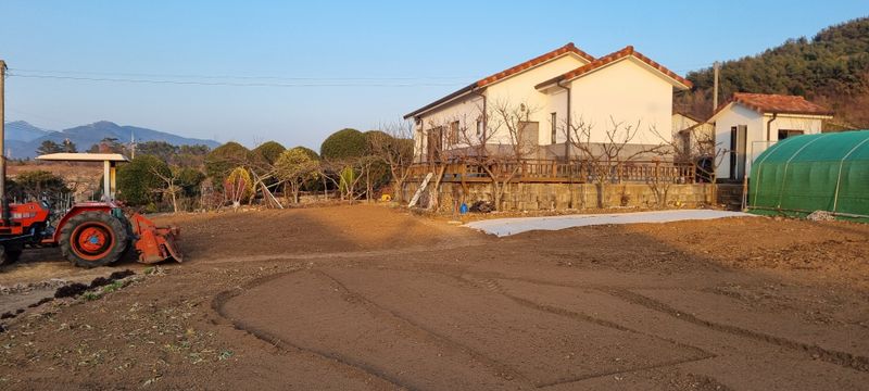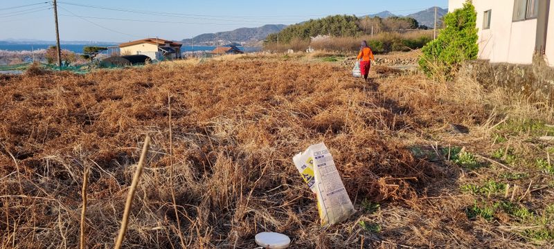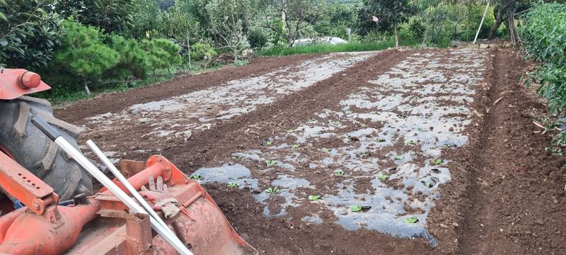 비료 땅갈기 비닐씌어 배추모종 무씨 심기 시금치 씨 심다 집뒤 매실 밭 우리집 쪽 예치기 풀베기