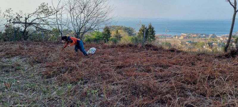고사리 수확 아침 정촌 고사리밭2포대 오후 우물위 고사리1포대