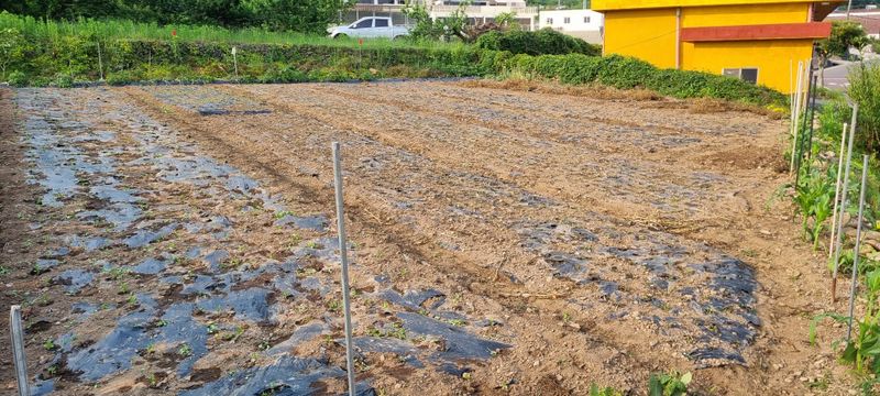 마늘 수확하고 그 마늘 구멍에, 참깨 씨 뿌리다
