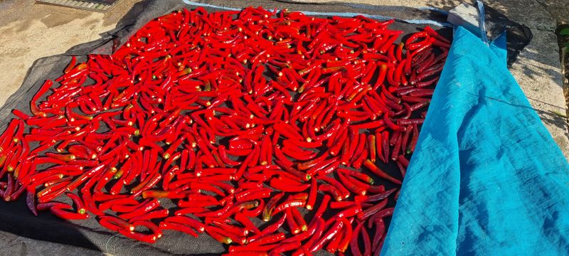 어제 하루 햇볕에 말린 🌶 아침 08시30분 고추 건조기에 넣다 55°C, 24시간 설정, 얼추 마르면 다시 햇볕에 말릴 예정이다
