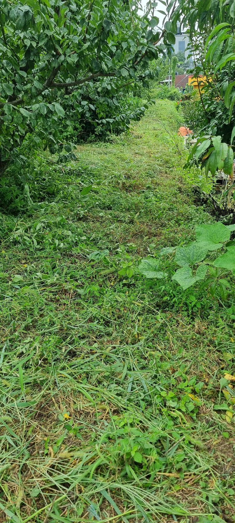 이른 아침 밭 풀베기 예초기는 늘 말썽이다, 먹기싢은 개떡만큼 남았을 때 예초기 날이 돌아가지 않는다 낫으로 마저 풀베고 마침,