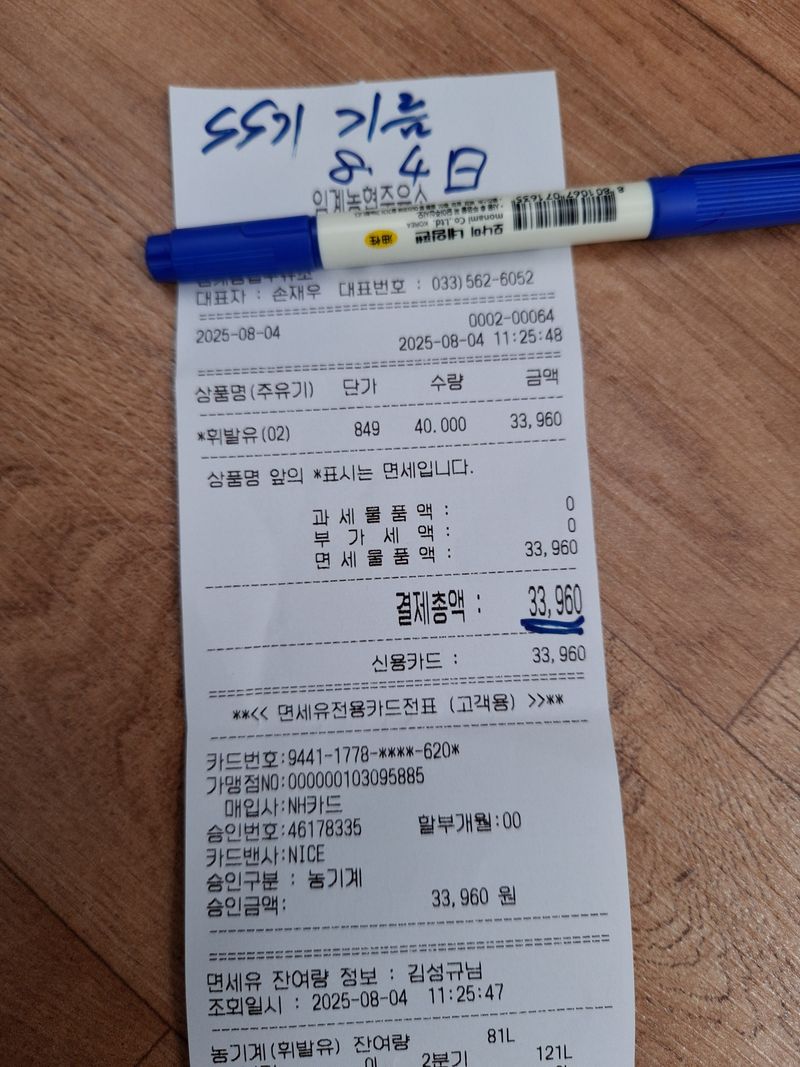 적엽작업 6명 반사필름 5개 휘발유 2말 구입