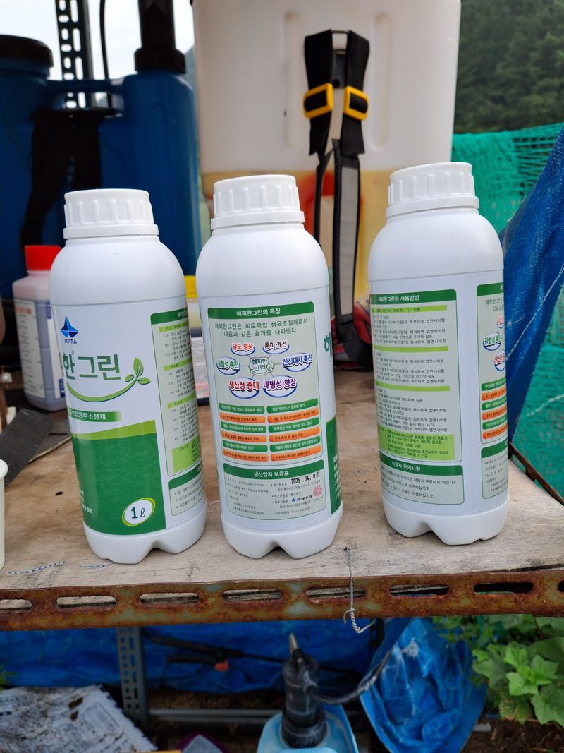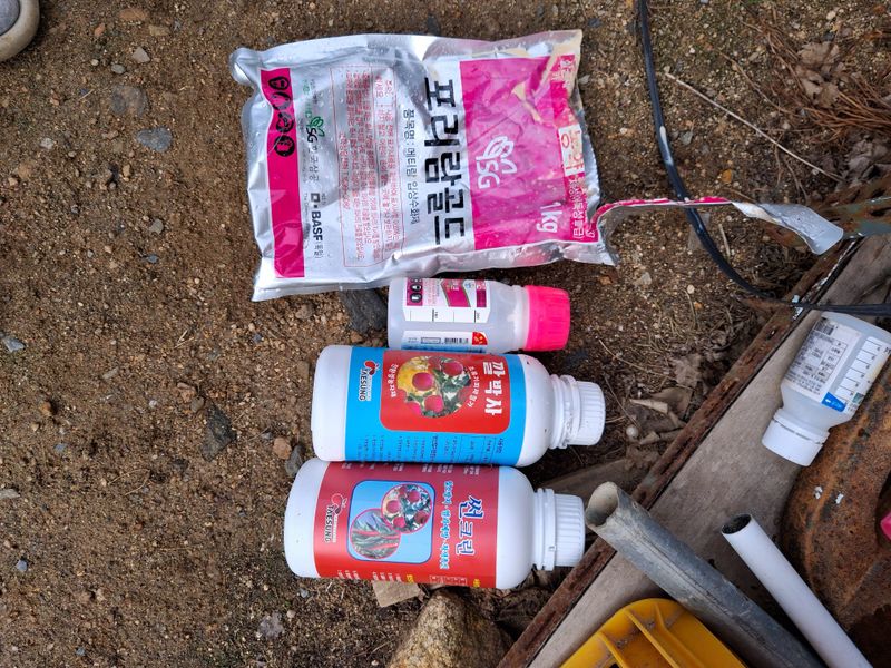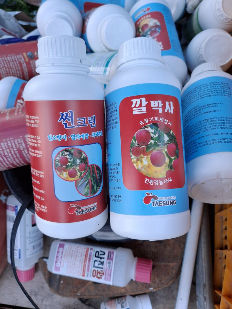 홍로 착색제 엽면시비(깔박사2 선크림1병)500리터 기준 부사는 황산가리 3포 바닥시비)