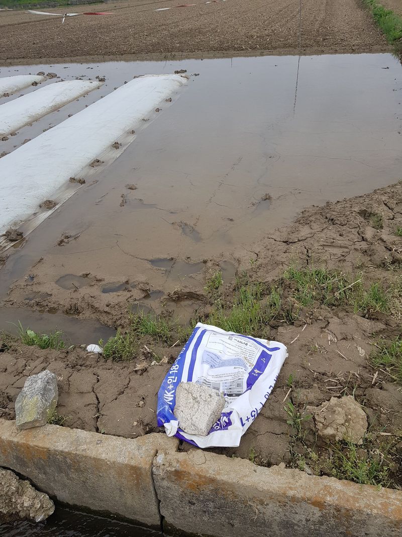 장마가 시작되니 엄청난 비가쏟아붓는다. 논두렁 몰막이를어막고 물고도터주었다.