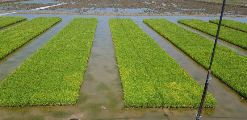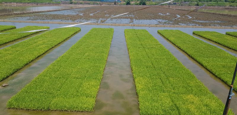 엊그재 모짜리 한거같은데 모가 많이자랐어요.단단해 지라고 하우스비닐벗기고.논갈이.써레질까지 마쳤습니다.5월11일. 모내기 합니다.