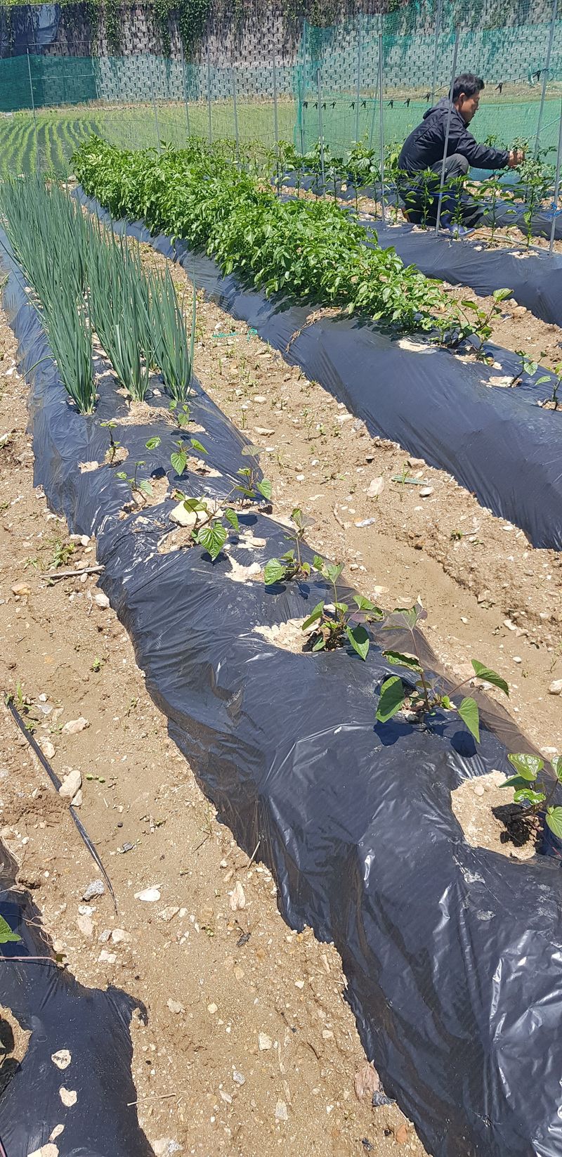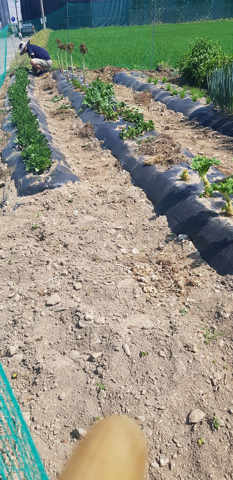오늘은 날씨도좋아서. 상추.파 .부추,취나물. 곰취,를 이식하고 왔다 .토비 냄새가많이나서 힘들었지만 시간지나니. 어느새냄새는 사라지고 검은비닐위에 하나씩 늘어나는 채소들~잘자라라!!!!!