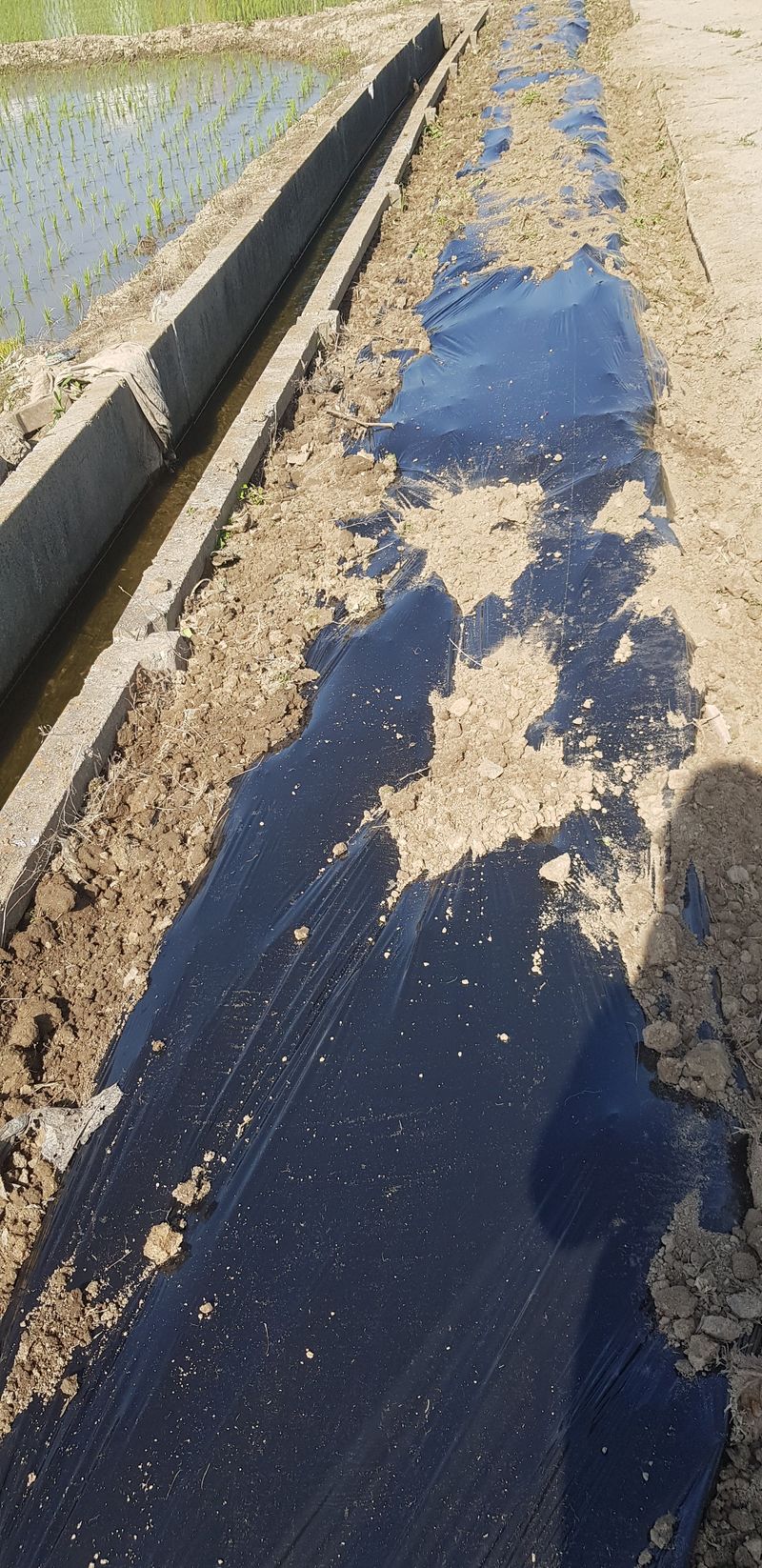 못자리에볍씨뿌리고 비닐씌우는 작업을했다.