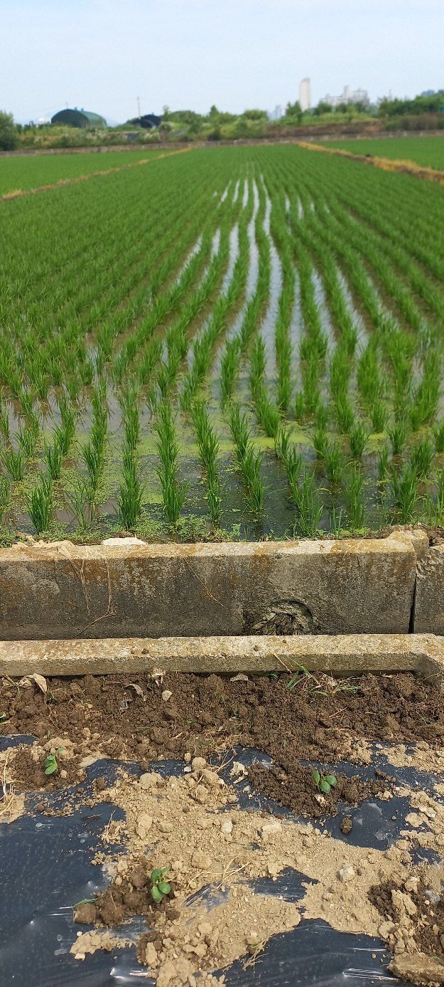 오늘은 모짜리 얼마나자랐나 남편가는길에 같이가보았다. 모짜리비닐사이로제법 크게자란게보인다.논갈이는 다했구~ ㅠ 이제 모심는. 시기가 오는건가~