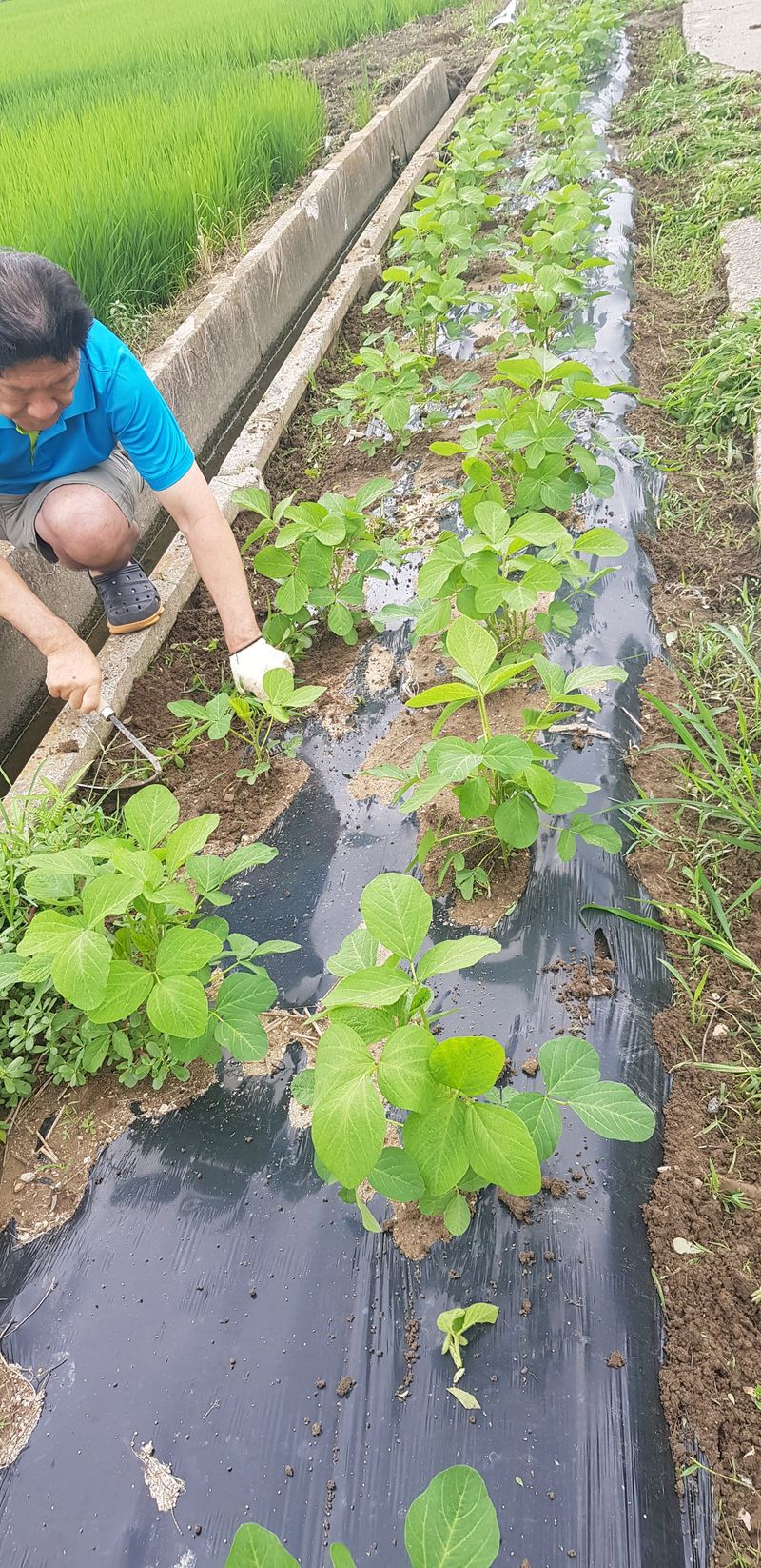 물막이를 막고 논두렁에. 서리태 풀뽑아주고. 2차순까지질러주었다.